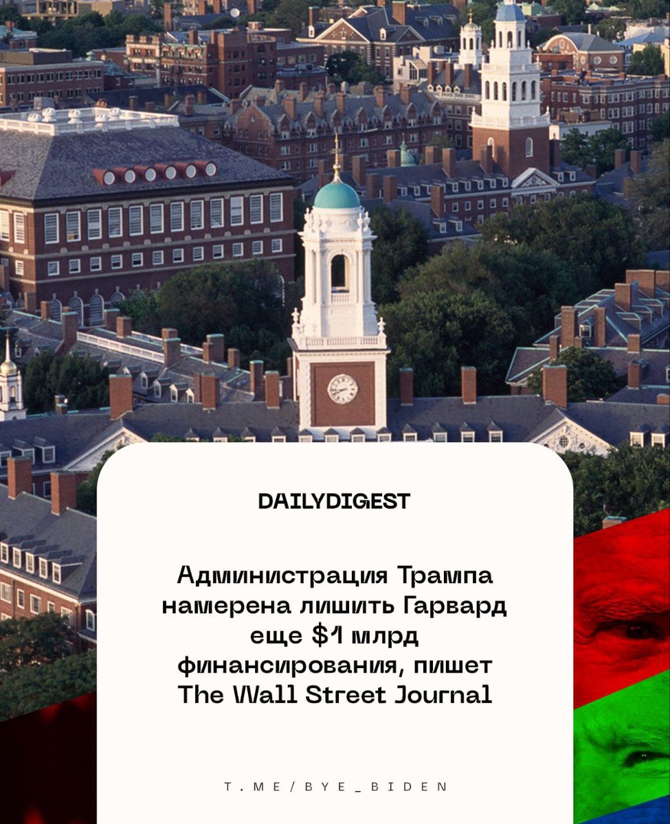 ☑️Главные новости на утро 21 апреля: 🔹Администрация Трампа намерена лишить Гарвард еще $1 млрд финансирования, пишет The Wall Street Journal. 🔹Политик Топкурулу: свобода маневра Турции при низких пошлинах США несущественна. 🔹WSJ: США предложили организовать нейтральную территорию вокруг Запорожской АЭС. 🔹Глава ЕК фон дер Ляйен: IT-гиганты должны соблюдать правила ЕС. 🔹JAXA: площадь льдов в Северном Ледовитом океане стала минимальной с 1979 года. 🔹Трамп: многие мировые лидеры просят США уменьшить таможенные пошлины. 🔹Президент Сальвадора Букеле предложил Мадуро обменять заключенных венесуэльцев. 🔹Tagesspiegel: Россия опередила Северную Европу в создании БПЛА в Арктике. 👍 БайБайден. Подписаться