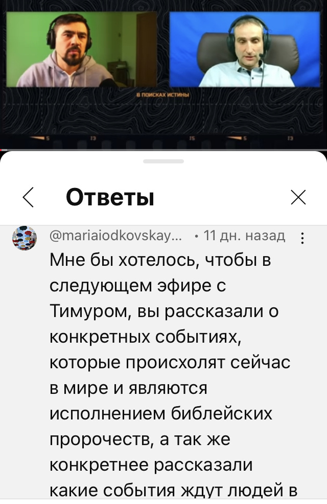 Христианским блогерам и проповедникам, Дмитрию Черноусову и его другу Артёму поступил вопрос от Марии, см. два скриншота: