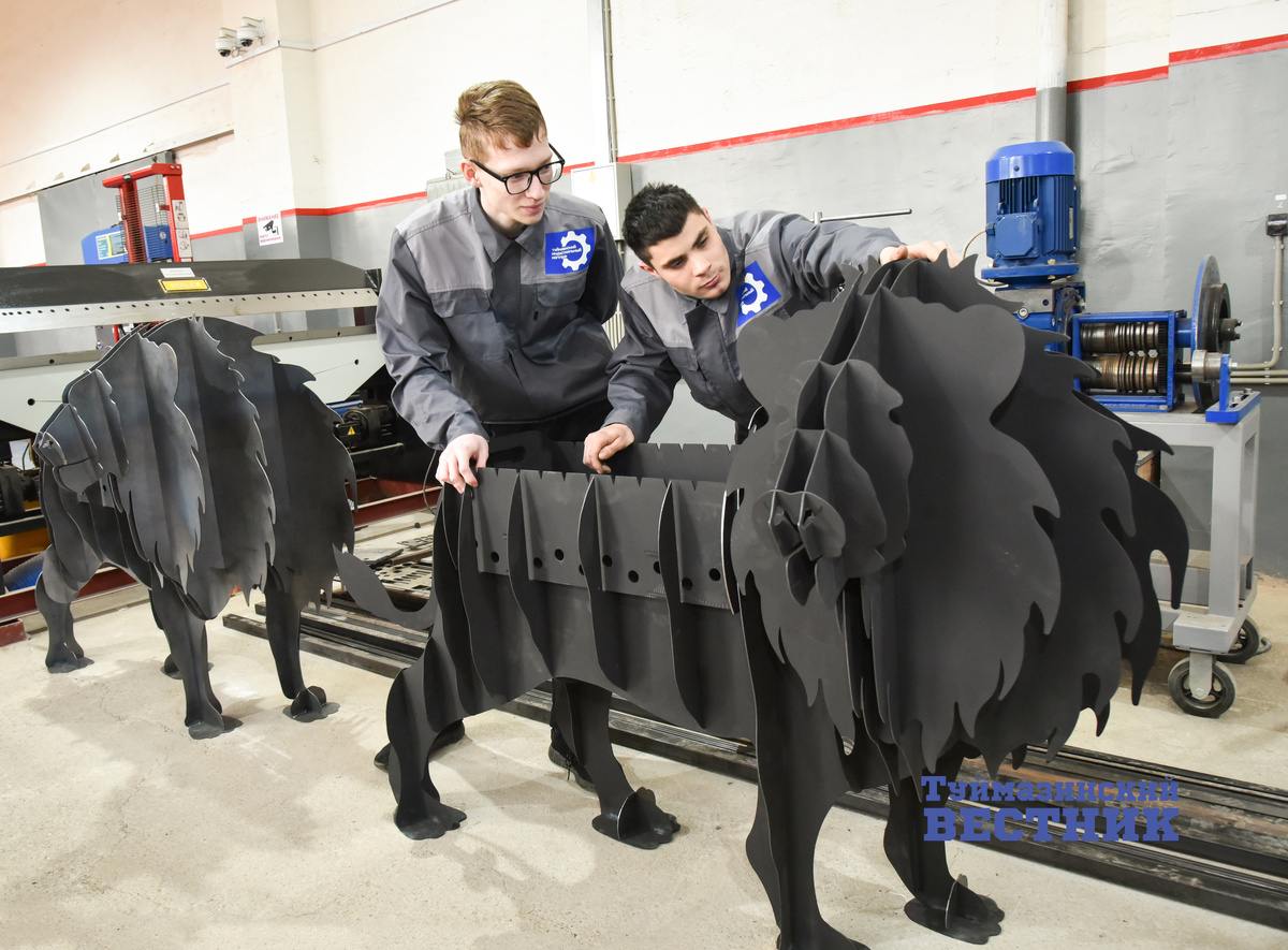 Мангал в форме «царя зверей» изготовили студенты индустриального колледжа вместе с преподавателем. Мангал в форме льва изготовили 37-летний мастер производственного обучения индустриального колледжа Артур Янгиров и его студенты. – Подобную конструкцию мангала студенты увидели в интернете, – рассказывает Артур Канарбаевич. – Это была сборная металлическая модель из 19 деталей. Чертежей у нас не было, поэтому третьекурсники Данил Идрисов и Тимур Шабиев по найденным в интернете эскизам разработали их сами. Они проделали большую работу, ведь изделие должно было получиться не только эстетичным, но устойчивым и функциональным. Сначала мы уменьшенную версию. Это был скорее львенок длиной в 30 сантиметров. По ходу работы исправили некоторые огрехи, а когда убедились, что все делаем правильно, взялись за изготовление мангала в натуральную величину. Он получился высотой 120 см и длиной 180 см. Все детали вырезали на лазерном раскройном станке. На работу ушло три дня. В итоге у нас получился не п