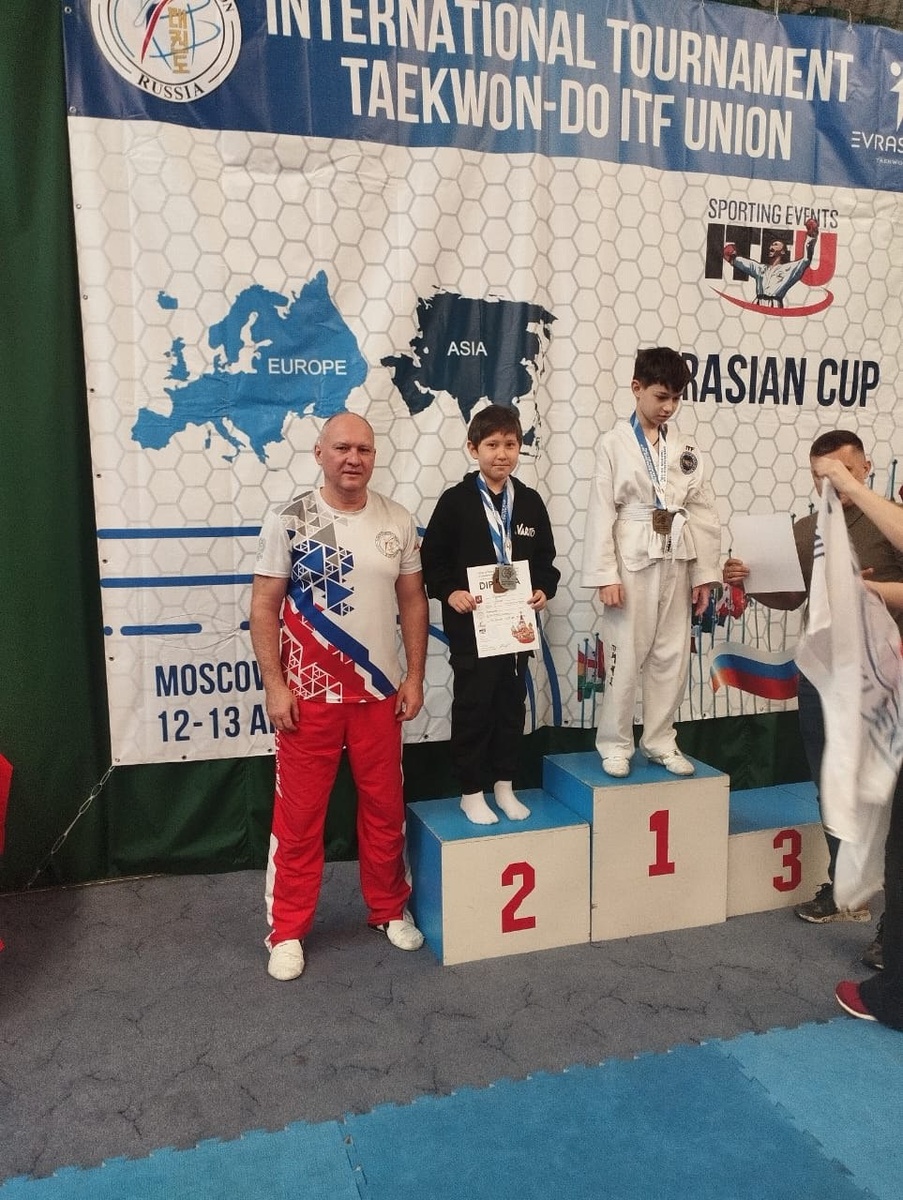 🥋 Победы наших спортсменов в турнире по тхэквондо В спорткомплексе Черёмушки прошёл турнир по тхэквондо ИТФ Юнион "Кубок Евразии". От секции тхэквондо школы 1358 выступили 3 спортсмена! Несмотря на сильную конкуренцию и большое количество участников во всех категориях, наши ребята показали отличные результаты. 💪 Школьная команда продемонстрировала отличную технику боя. Эмир занял 2 место - спарринг, 3 место - туль. Матвей - 3 место - спарринг. Андрей - пока не вошёл в призовые места. 🏆 Большая благодарность тренеру Денисову Олегу Михайловичу за подготовку к этим победам. Поздравляем с заслуженными наградами и желаем новых ярких побед! Педагог-организатор Виктория Викторовна Ефремова #школа1358 #ДОНМ #ТалантливыеДетиМосквы