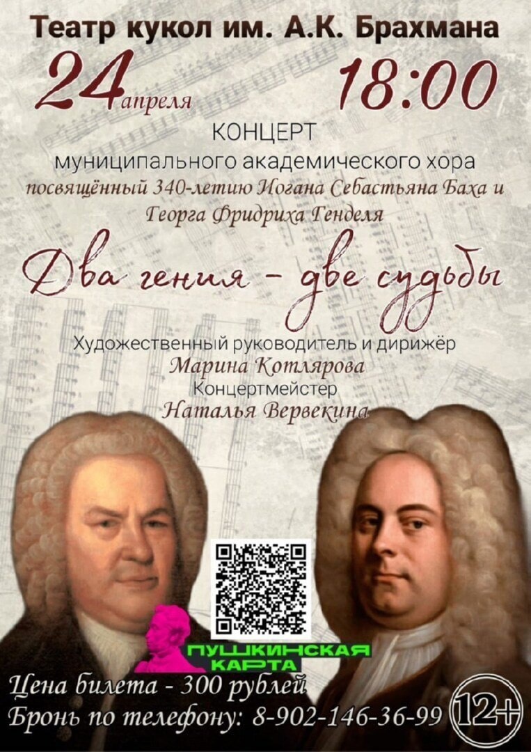 В четверг, 24 апреля, в Рубцовске состоится концерт муниципального академического хора, посвященный великим композиторам эпохи барокко — Иоганну Себастьяну Баху и Георгу Фридриху Генделю.