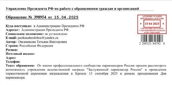 Когда я рассказывала о нашей борьбе за признание Дня парикмахера — я говорила правду. Правду о том, что за каждой красивой прической стоят часы труда, талант и душа мастера. Правду о том, что наша профессия заслуживает уважения. Но одного искреннего рассказа оказалось мало. Важны были действия: десятки писем в государственные органы, сотни подписей под петициями, тысячи переживаний и сомнений. И только когда мы начали действовать — нас услышали. Совет Федерации поддержал нас не потому, что мы красиво говорили. А потому что мы доказали: нашу историческую значимость (300+ лет традиций!), социальную важность (100 000+ благополучателей "Парикмахера добра"), экономический вклад (500 000+ специалистов). Наша дела — это: Конкретные цифры (не "много салонов", а не менее "10 000 предприятий") Документы (письмо СФ №3.6-26/1524 — не эмоции, а факт) Реальные шаги (от эскиза монеты до плана выставки в Госдуме) Теперь я знаю: слезы высыхают, слова забываются — остаются только дела.