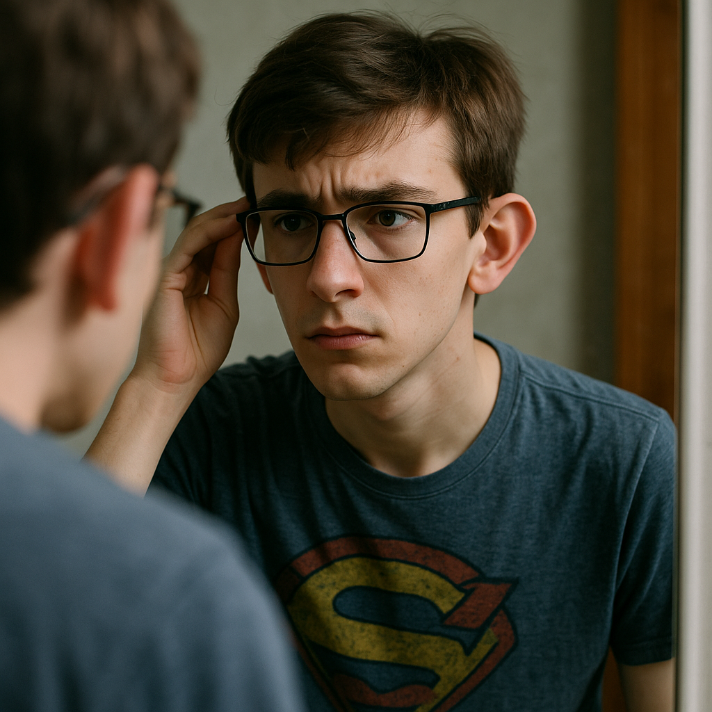 Что нос стал меньше. Что очки — вдруг исчезли. Что уши, немного торчащие, вдруг прижались. Но зеркало было упрямым — показывало правду.