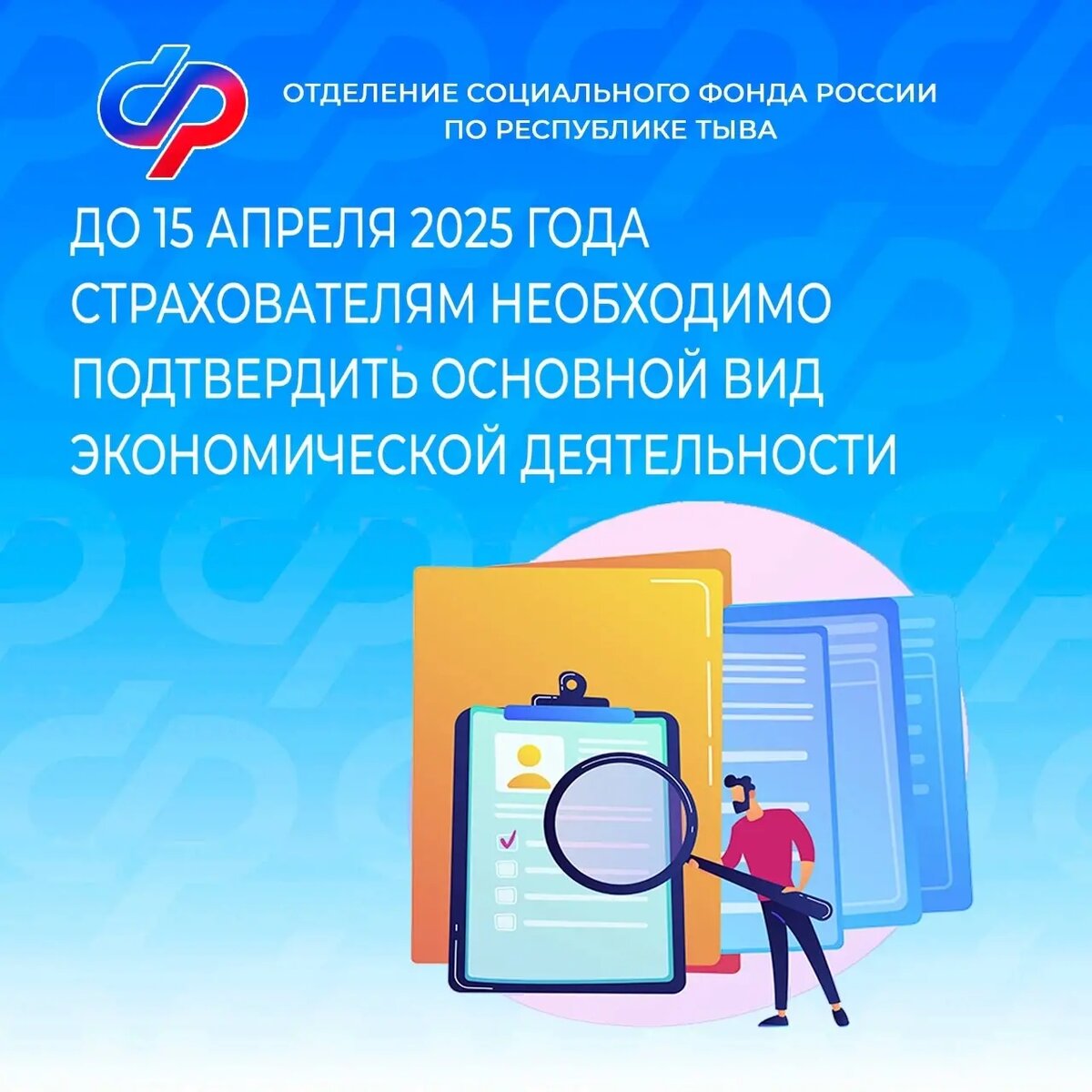 До 15 апреля страхователям Тувы необходимо подтвердить в Отделении Социального фонда России по РТ основной вид экономической деятельности (ОВЭД)