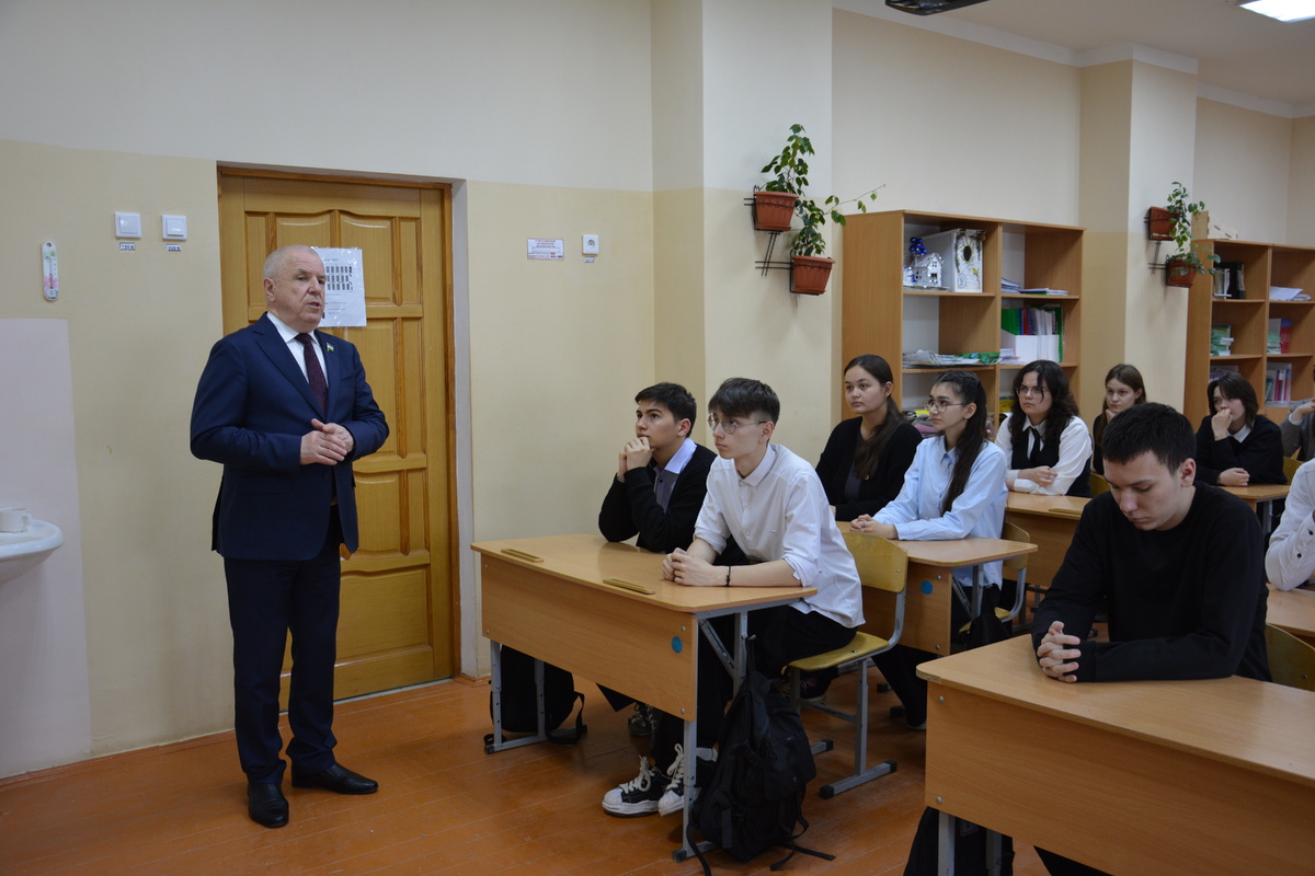 Азат Мухаметзянов встретился со старшеклассниками 10 апреля школу № 1 города Давлеканово посетил депутат Государственного Собрания – Курултая Республики Башкортостан седьмого созыва, главный врач Республиканской клинической инфекционной больницы Азат Мухаметзянов. В рамках празднования 30-летия Государственного Собрания – Курултая РБ Азат Мунирович провёл для старшеклассников классный час. Он рассказал о деятельности парламента, роли депутатов, процессе принятия законов, а также о своей работе с избирателями, участии в заседаниях и депутатской этике. Ребята задавали вопросы: как он стал депутатом, какие партии представлены в Госсобрании и другие. В завершение встречи Азат Мунирович пожелал выпускникам успешно сдать экзамены и найти своё призвание, поделившись личным примером на пути к достижению цели: «С выбором профессии я определился уже в 9 классе. После школы попытался поступить в медицинский институт, но не сдал физику. Было стыдно возвращаться домой, поэтому подал документы в ме