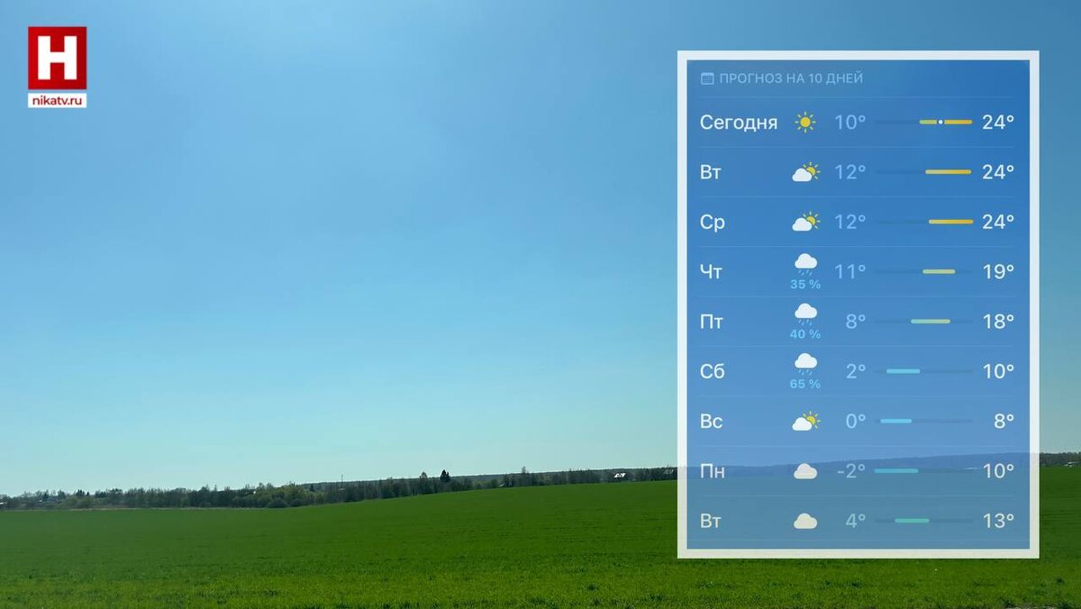 ⛄️В выходные возможны заморозки Сегодня продолжаем наслаждаться летом, а вот со вторника начнут набегать облачка. Во второй половине дня местами пройдут грозы. Температура продолжит падать, а в выходные ночью возможны заморозки до -2 и мокрый снег. 🤖 Прислать новость 📺 Заказать рекламу