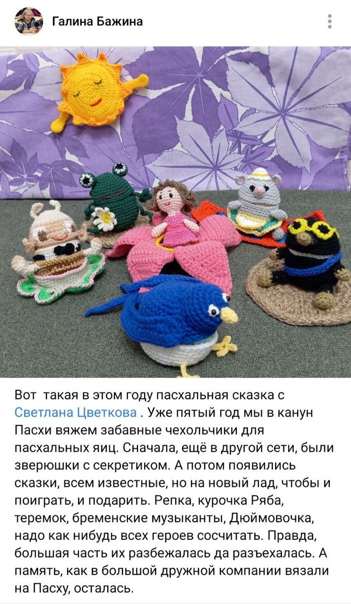 Праздник прошёл, а вот тёплые приветы и ваши готовые сказки продолжают радовать! И самое приятное - что они не лежат без дела, а находят свои новые дома. Спасибо, что столько лет вяжете вместе со мной! Для меня это очень ценно ❤ Для тех, кто не успел связать сказку Дюймовочка, до 31 мая материалы марафона Пасхальныйсюрприз 6 будут в клубе. Потом перенесу в отдельную закрытую группу с платным доступом. Присоединиться к клубу можно по ссылке⬇️ https://vk.com/donut/toyfabric #пасхальныйсюрприз6