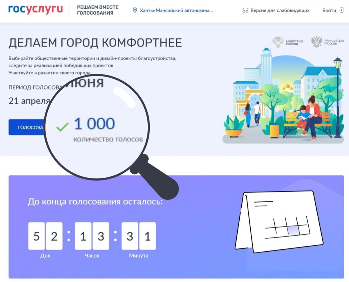С праздником! Стартовало Всероссийское онлайн голосование за объекты благоустройства 🗓️ В 2025 году календарные границы голосования по выбору общественных территорий для благоустройства на 2026 год символичны: начавшись сегодня, 21 апреля, в День местного самоуправления, оно завершится 12 июня – в День России. Это подчеркивает, что развитие страны начинается с активного участия каждого жителя в жизни своих городов и посёлков. С 0:00 часов сделать свой выбор на онлайн-платформе zagorodsreda.gosuslugi.ru может каждый югорчанин, которому на момент голосования исполнилось 14 лет. 🗺️ 15 муниципалитетов региона представили на суд земляков 52 общественные территории. Среди них — парки, скверы, набережные, детские площадки. За количеством проголосовавших можно следить без входа в личный кабинет. Первые голоса жителей Югры появились на портале уже ночью, а ровно в 10 часов 30 минут их количество перевалило за 1000. 🔵 Голосование ежегодно проходит в рамках федерального проекта «Формир