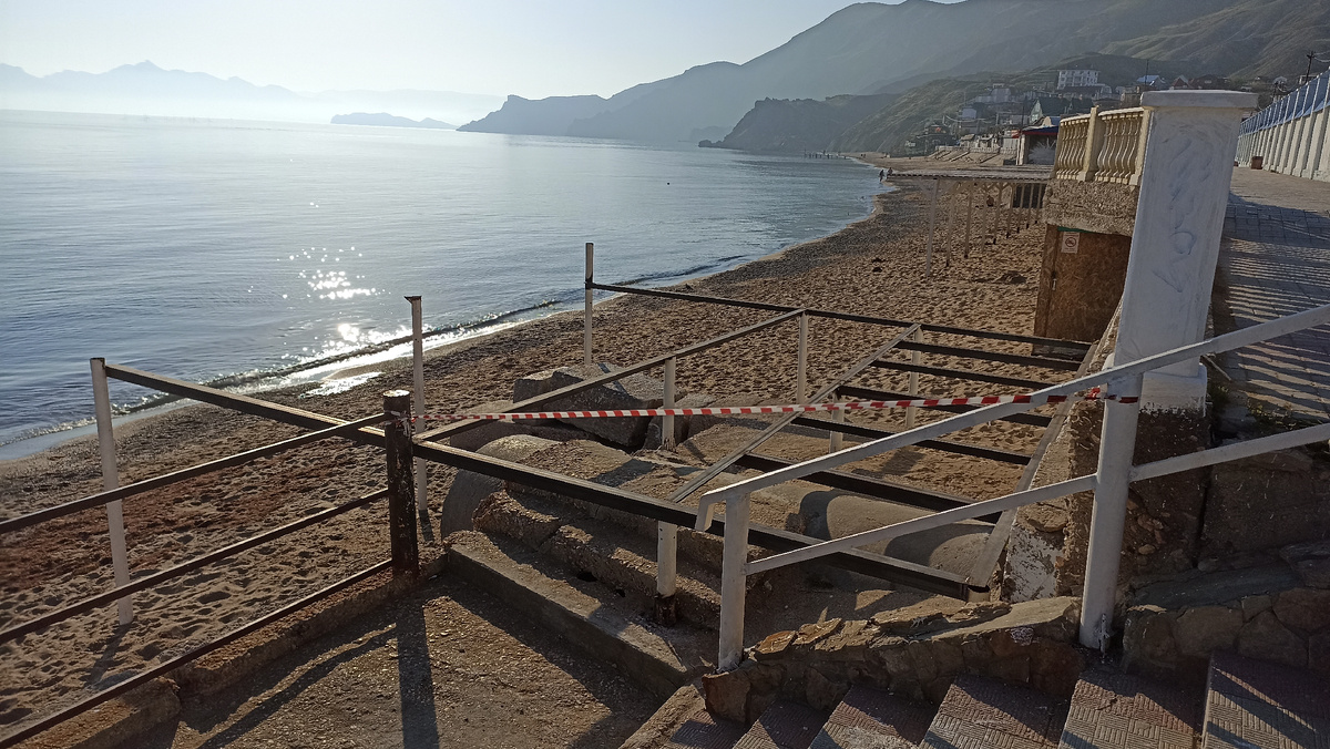 Посёлки и городки у моря - тишина, красота, умиротворение. Думаете, всегда так безоблачно и спокойно ? Ничуть не бывало! Здесь постоянно нарушаются законы РФ, касающиеся использования пляжей. Аренда земли у кромки воды - весьма доходное дело. И арендаторы стараются выжать как можно больше больше из "своего" золотого кусочка. Вот сейчас, чувствую, снова назревает в Орджо скандал. В нарушение Водного кодекса РФ арендаторы пляжа перекрыли металлическим каркасом центральный спуск к морю. Это что ж теперь получается? Вот вы идёте по жаре к прохладному морюшку, а оно... Ага! Видит око, да зуб неймет: направо с лестницы вам теперь не спуститься к любимым навесам. Бесплатным, к слову сказать. Теперь надо будет обходить или с левой стороны по нижней набережной до узких и не очень удобных лесенок, или топать аж до той части верхней набережной, где кафе и есть лестницы на пляж. Все, кто отдыхал в Орджо прошлым летом, помнят, наверное, как именно здесь, у центрального спуска на пляж мешались пл