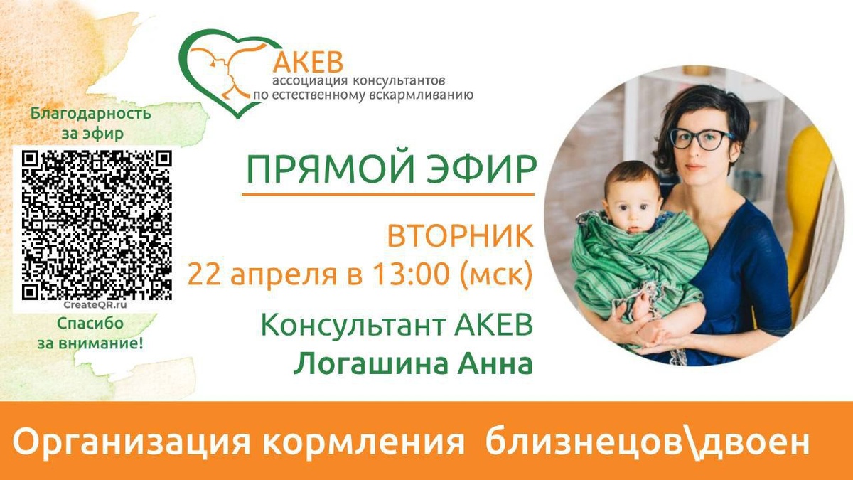 💡Ребенок это счастье. А что, если у вас двойное счастье? 22 апреля в 13.00 (мск) в прямом эфире группе АКЕВ вКонтакте https://vk.com/akev_info поговорим на тему «Организация кормления с близнецами/двойнями» Ведущая эфира – Логашина Анна Викторовна, консультант по грудному вскармливанию АКЕВ, послеродовая доула АПД. Рассмотрим особенности кормления двойняшек\близнецов: - какие позы подходят? - лучше прикладывать детей по очереди или одновременно? - как понять, что детям достаточно питания? А так же, обсудим режимы дня близнецов/двоен. Если вам нравятся наши эфиры и информация полезна для вас, поддержите нас лайком, комментарием или денежным донатом. Это поможет нам развиваться дальше и делать для вас новые интересные эфиры. Куаркод для пожертвований на экране. Подписывайтесь и вы не пропустите следующие эфиры. Ставьте лайки, оставляйте комментарии, предлагайте новые темы. Так нам будет понятно, что вам интересно. Рады быть полезными☀️
