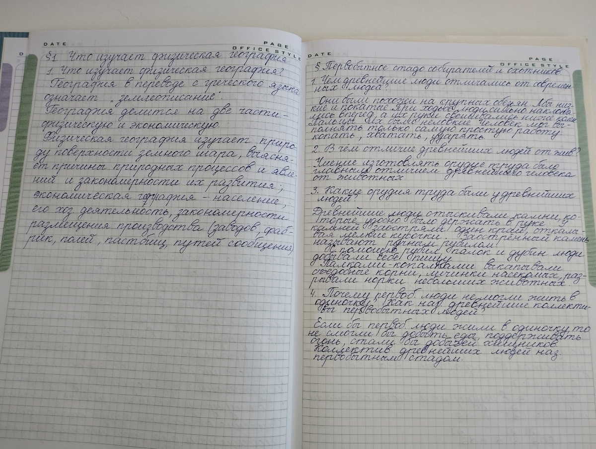 На все меня не хватает, поэтому выбрала английский, арифметику, географию, историю, ботанику. Завела большую тетрадь и стала там всё подряд писать: где конспекты, где ответы на вопросы после учебника, где решала примеры.