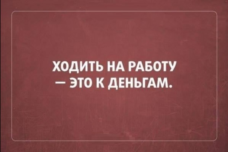Счастье – это когда высота полета мысли не превышает зарплату за месяц Новый план правительства по повышению доходов населения: «Нужно ввести регрессивную шкалу. Доход до 24000 рублей в месяц облагается налогом в 50%. Доход свыше 1 млн в месяц налогом не облагается. Тогда получать маленькую зарплату станет невыгодно, и все начнут получать большую» 🔷🔷🔷🔷🔷 Первый выходной я не помню, потому что отхожу от работы. А второй – я весь день думаю: «А-а-а, завтра на работу!». 🔷🔷🔷🔷🔷 Заметила, что по выходным мало кто пишет в соцсетях. Сразу видно – делом люди занимаются, а не на работе сидят. 🔷🔷🔷🔷🔷 – В четверг я немного опоздаю на работу...