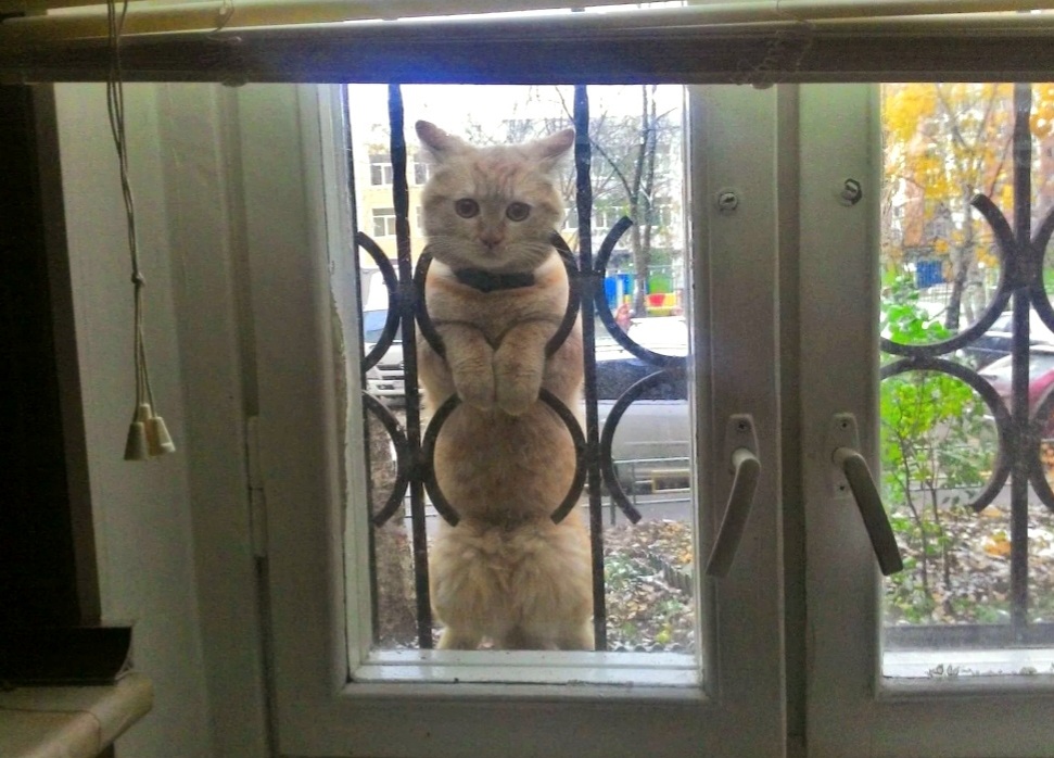 Лёха, впусти, пожалуйста: 15 забавных кадров с котами, которые отчаянно пытаются попасть домой
