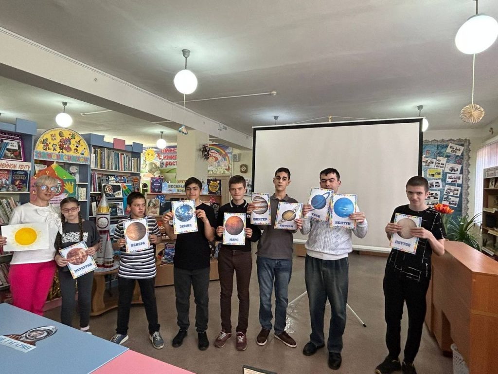 7 апреля в Детской библиотеке МБУК Мясниковского района «МЦБ» прошло познавательное и яркое мероприятие, приуроченное ко Дню космонавтики «Над нами звёздное небо». Члены клуба «Папа особого ребёнка» с помощью электронной презентации окунулись в загадочный мир звезд и планет, познакомились с историей развития космонавтики, узнали о первом полёте в космос, о Белке и Стрелке, о первом космонавте Ю. А. Гагарине и о первом в мире, пилотируемом космическом корабле «Восток». Детям было предложено превратиться в космонавтов и отправиться в космическое путешествие. Но, прежде, чем отправить космические экипажи в полет, необходимо было проверить их готовность на физическую разминку, тренировали равновесие под ролик «Мы космонавты», и прошли интеллектуальную часть «Космические загадки», организовали под музыку «Парад планет». Затем ребята участвовали в играх «Звёзды и астероиды», «Невесомость» с воздушными шарами, на Луну с героями мультфильма «Маша и медведь». А в творческой части «Космические р