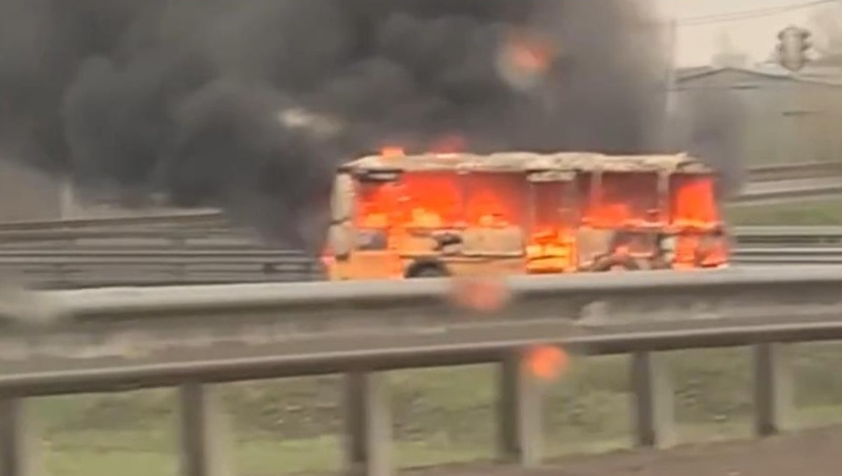 На Затонском мосту в Уфе во время движения загорелся школьный автобус.