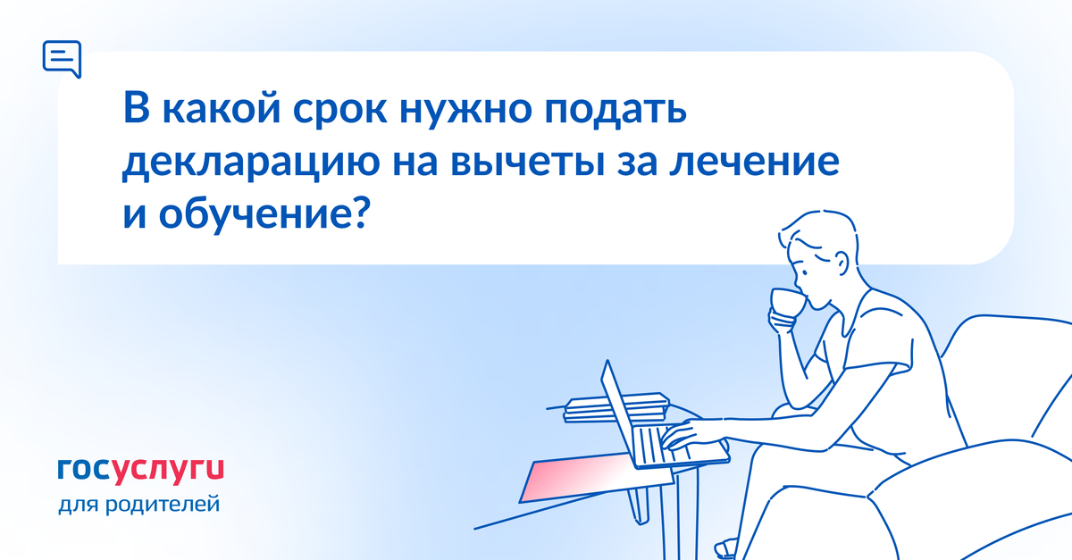 Если в декларации заявляется только вычет, а доходы — нет, то срок ее подачи не установлен. Дата 30 апреля касается только декларирования доходов прошлого года. На вычет ее можно подать и позже. ☝️ Но есть ограничение. При оформлении вычета за лечение или обучение налог можно вернуть за год, когда были такие расходы. Декларацию для этого нужно подать в течение трех лет после окончания этого года. На примере В 2024 году мама оплатила лечение ребенка у стоматолога. Вычет применяется к доходам того же 2024 года — она вернет часть уплаченного в этом периоде налога. Декларацию на вычет нужно подать до 31 декабря 2027 года. Кто может оформить вычет на лечение ребенка