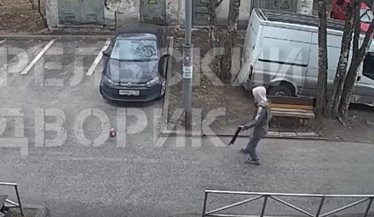 В источнике опубликовано два видео, одну запись сделал очевидец. За кадром он произнес, что надеется, что это игрушечный дробовик.
