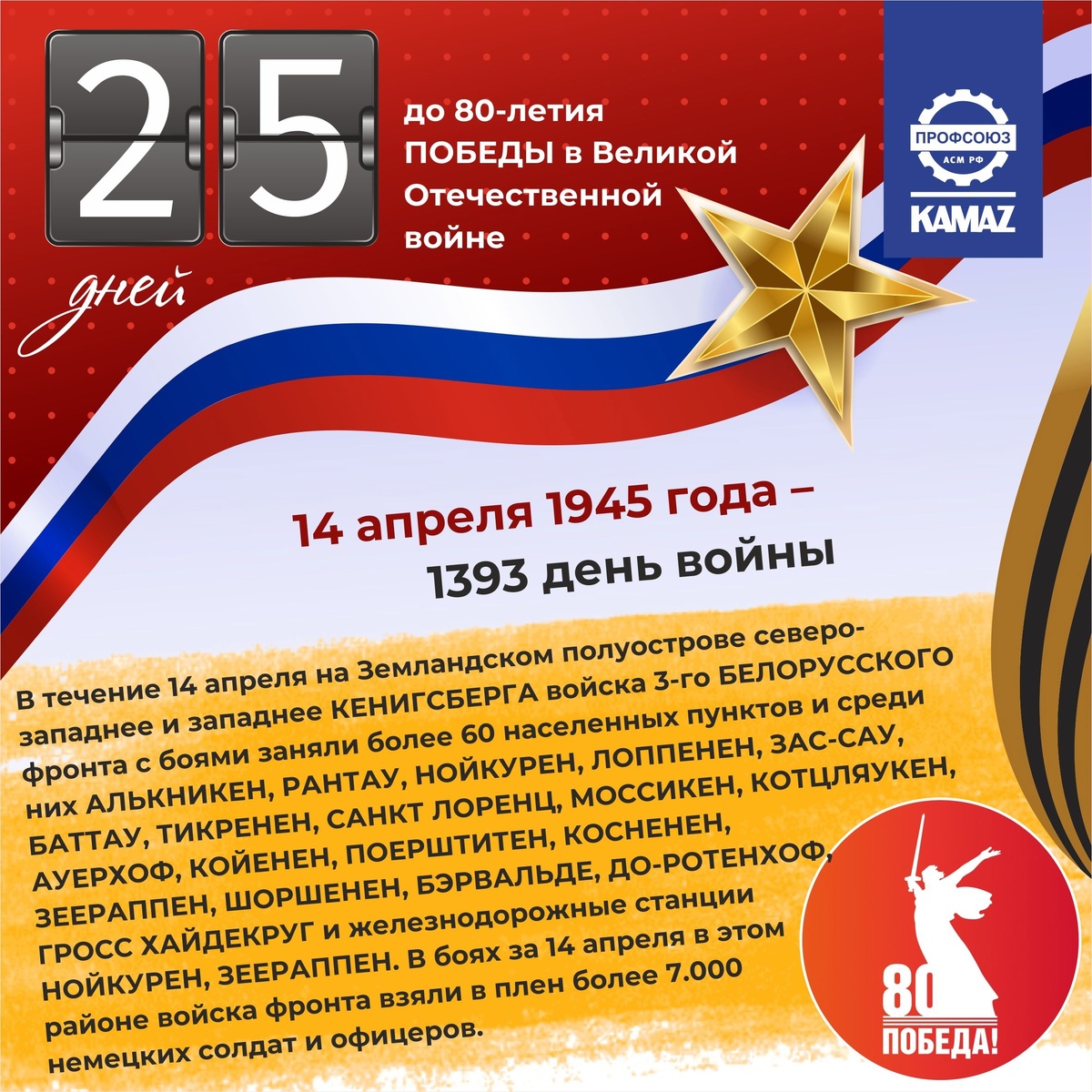 В течение 14 апреля на Земландском полуострове северо-западнее и западнее КЕНИГСБЕРГА войска 3-го БЕЛОРУССКОГО фронта с боями заняли более 60 населенных пунктов и среди них АЛЬКНИКЕН, РАНТАУ, НОЙКУРЕН, ЛОППЕНЕН, ЗАС-САУ, БАТТАУ, ТИКРЕНЕН, САНКТ ЛОРЕНЦ, МОССИКЕН, КОТЦЛЯУКЕН, АУЕРХОФ, КОЙЕНЕН, ПОЕРШТИТЕН, КОСНЕНЕН, ЗЕЕРАППЕН, ШОРШЕНЕН, БЭРВАЛЬДЕ, ДО-РОТЕНХОФ, ГРОСС ХАЙДЕКРУГ и железнодорожные станции НОЙКУРЕН, ЗЕЕРАППЕН. В боях за 14 апреля в этом районе войска фронта взяли в плен более 7.000 немецких солдат и офицеров.