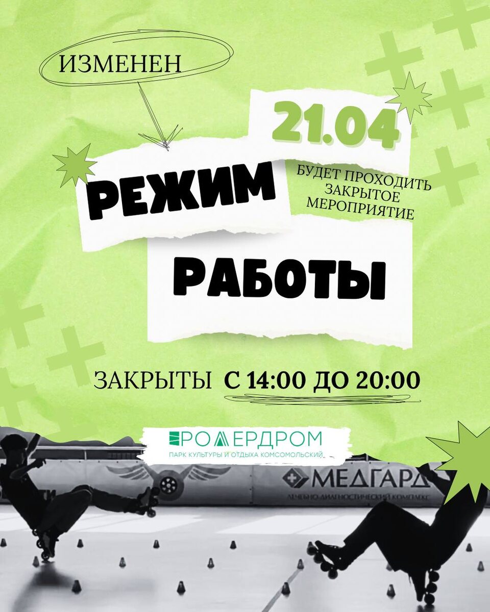 Врываемся в новую рабочую неделю с неожиданным поворотом в расписании 🗓️ Внимание, любители скорости и драйва! Сегодня роллердром закрыт для свободного катания с 14:00 до 20:00 в связи с проведением мероприятия. Но не спешите грустить! Вечером, с 20:00 до 21:00, он вновь распахнет двери для вас, чтобы вы смогли насладиться катанием по завершении дня!