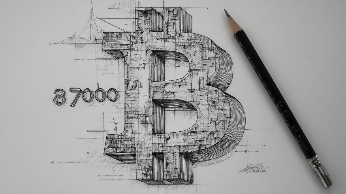 Создано на основе запроса: pencil sketch of bitcoin logo with sign "87 000