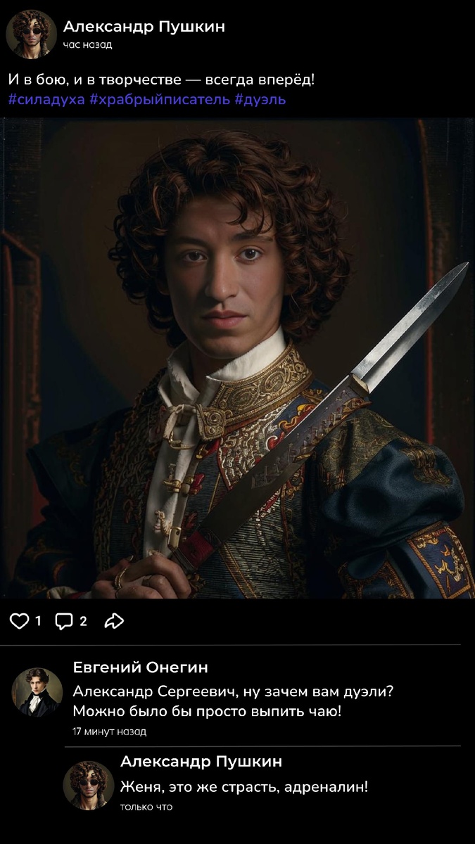 Как бы выглядели странички известных писателей в социальных сетях? 📱 ⚡️Скорее открывайте карточки и смотрите посты Александра Сергеевича Пушкина — русского поэта, драматурга и прозаика. Продолжаем? Пишите в комментариях, страничку какого писателя хотите увидеть следующей! 🥰