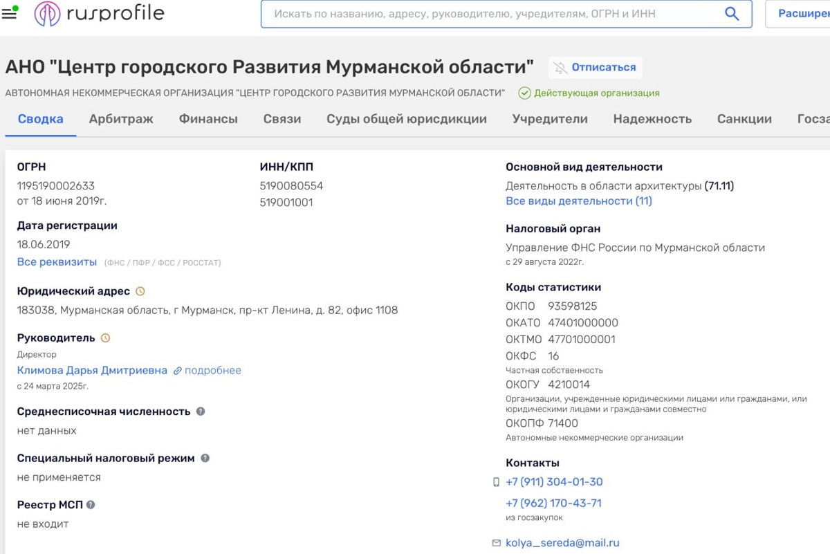В ответ на пост Губернатор Андрей Чибис на оперативном совещании официально представил Дарью Климову директором своей «любимой» АНОшки «Центр городского развития Мурманской области». Примечательно, что согласно данным сервиса Rusprofile, изменения в ЕГРЮЛ были внесены ещё месяц назад – 24 марта 2025 года. До этого времени (с момента ухода Валентины Мироновой в сентябре 2024 года), ЦГРом в статусе исполняющих обязанности руководили Татьяна Темерева и Евгения Гавриленко. ❄ «Арктический Обозреватель»