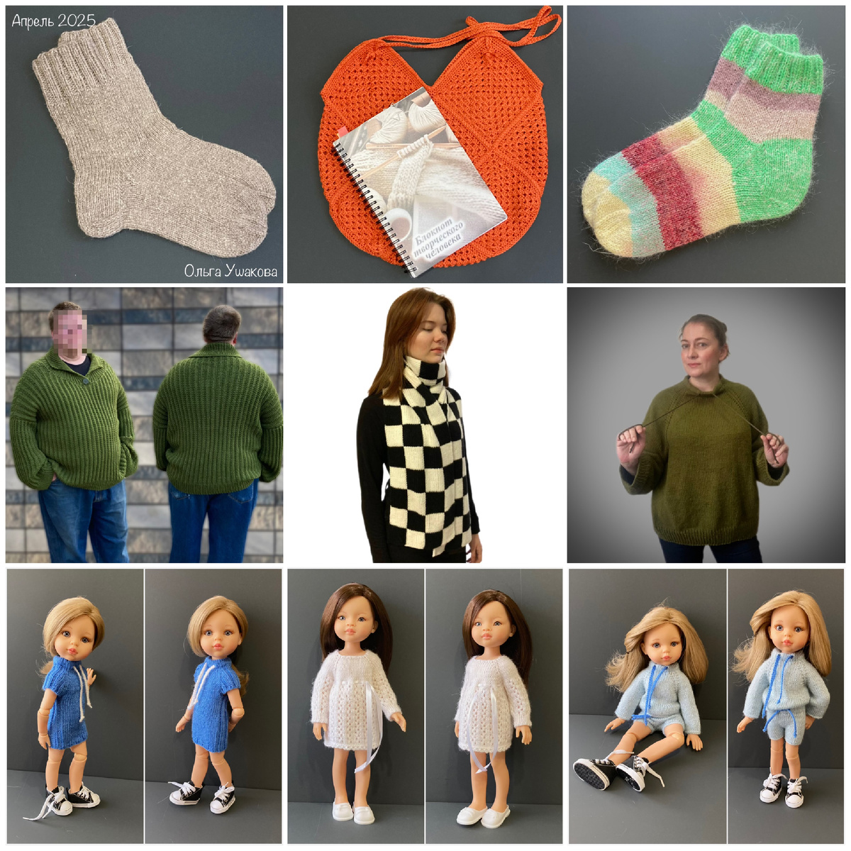 Не буду расписывать и повторять одно и тоже 😉 Сегодня кратко! В апреле вышло три описания для куклы Паола Рейна 😍 Все описания в бесплатном доступе для каждого на дзен канале. В рамках сп связано: носки 2 пары, авоська крючком в технике «Бабушкин квадрат» и шарф для дочери в технике интарсия. Связано два плечевых изделия: свитер мужу и худи для старшей дочери. По цифрам ⬇️ 1975 грамм 3870 метров 132 часа вязания Как прошел ваш апрель?