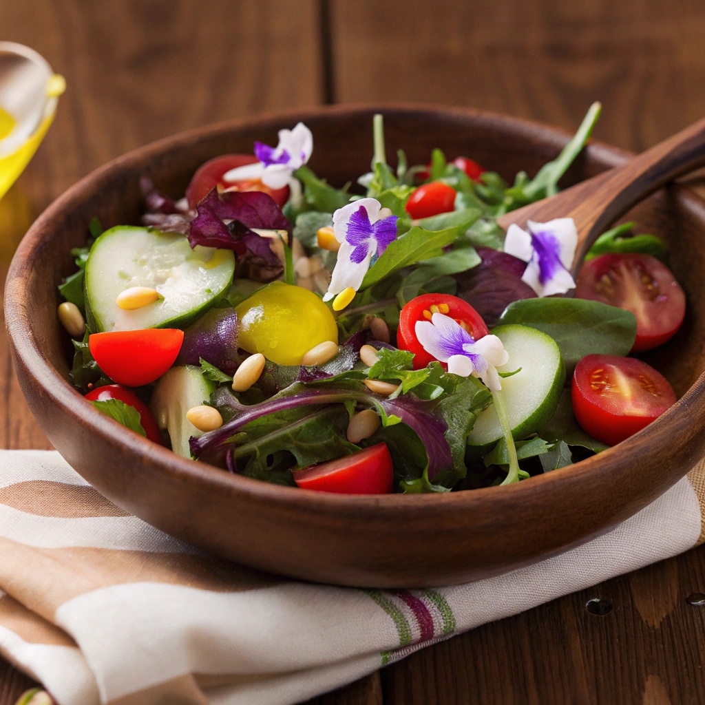 🌼 Съедобный салат‑букет с лепестками фиалки и рукколой