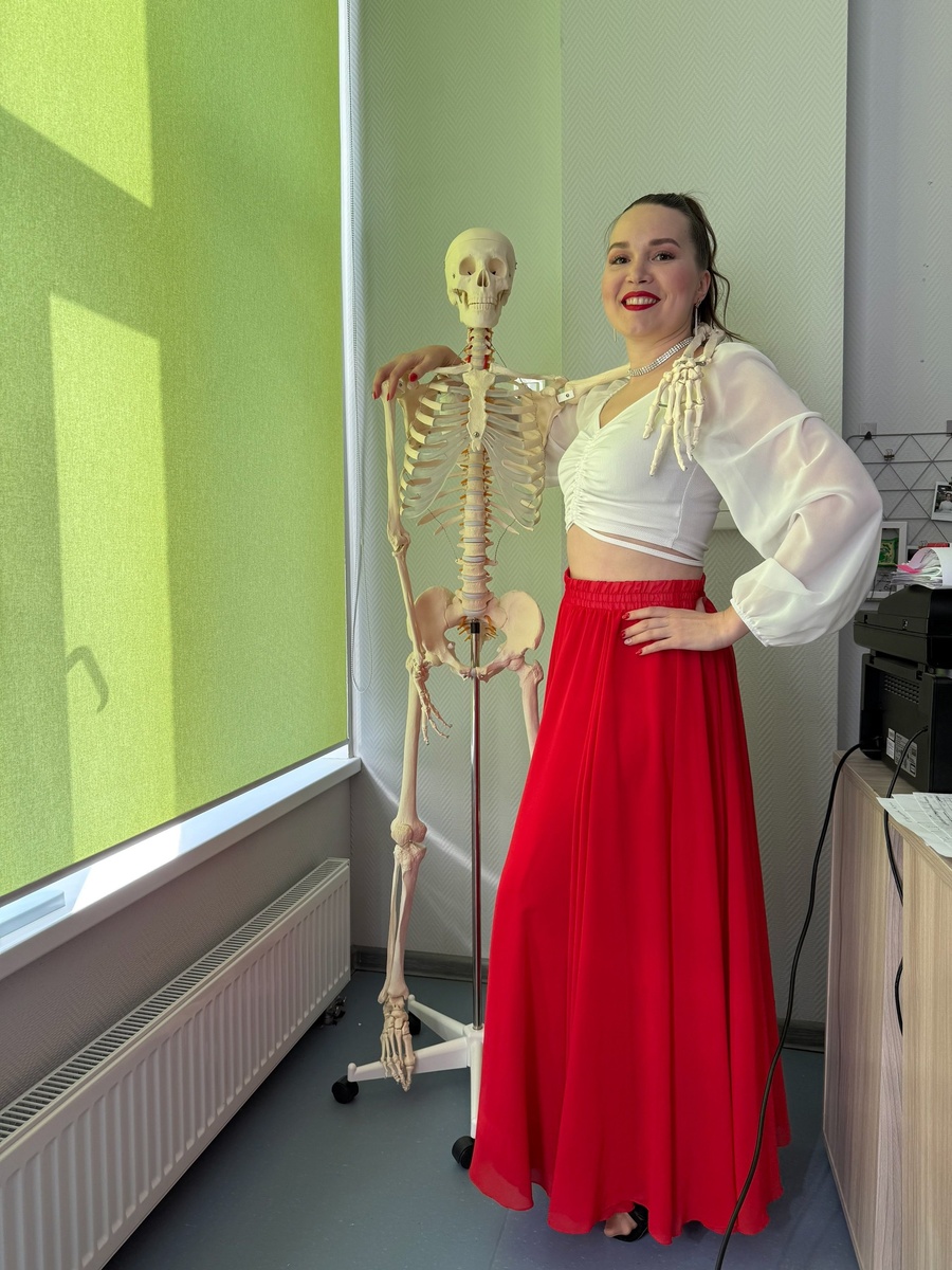 Путешествие в мир танцев, или где мы познакомились с "Бедным Йориком". Волею судьбы нас с Димой и наших учеников занесло в одну из обычных общеобразовательных школ Академического района в Екатеринбурге. Именно здесь в минувшую субботу проходил фестиваль "Танцуй Академ!". Было 86 номеров, в которых участвовали дети, взрослые и даже бабушки! А длился он 7 с лишних часов! Наше трёхминутное выступление пролетело как один миг. Больше всего запомнилась многомесячная подготовка к нему, а также день выступления, который мы провели в 203 кабинете биологии, заменивший нам гримёрку. Там мы познакомились с "Бедным Йориком" (со скелетом), посмотрели на саженцы перцев и поучаствовали в "ролевых играх". В смысле, наша ученица сыграла роль учителя биологии, а мы все были учениками. Я, кстати, сидела на первой парте, как и когда-то в своей серовской школе. Вообще мы с Димой были приятно удивлены, какие классные и современные сейчас появляются школы в нашем районе. Конкретно это учебное заведение отк