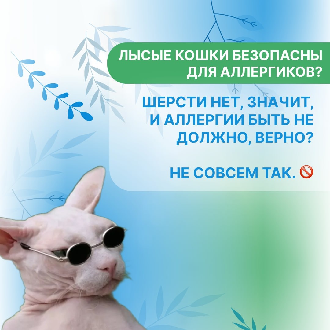 Лысые кошки безопасны для аллергиков? Многие считают, что лысые кошки – идеальный питомец для аллергиков. Ведь шерсти нет, значит, и аллергии быть не должно, верно? Не совсем так. 🚫 А в вашей семье живет лысик или пушистик? 🐈