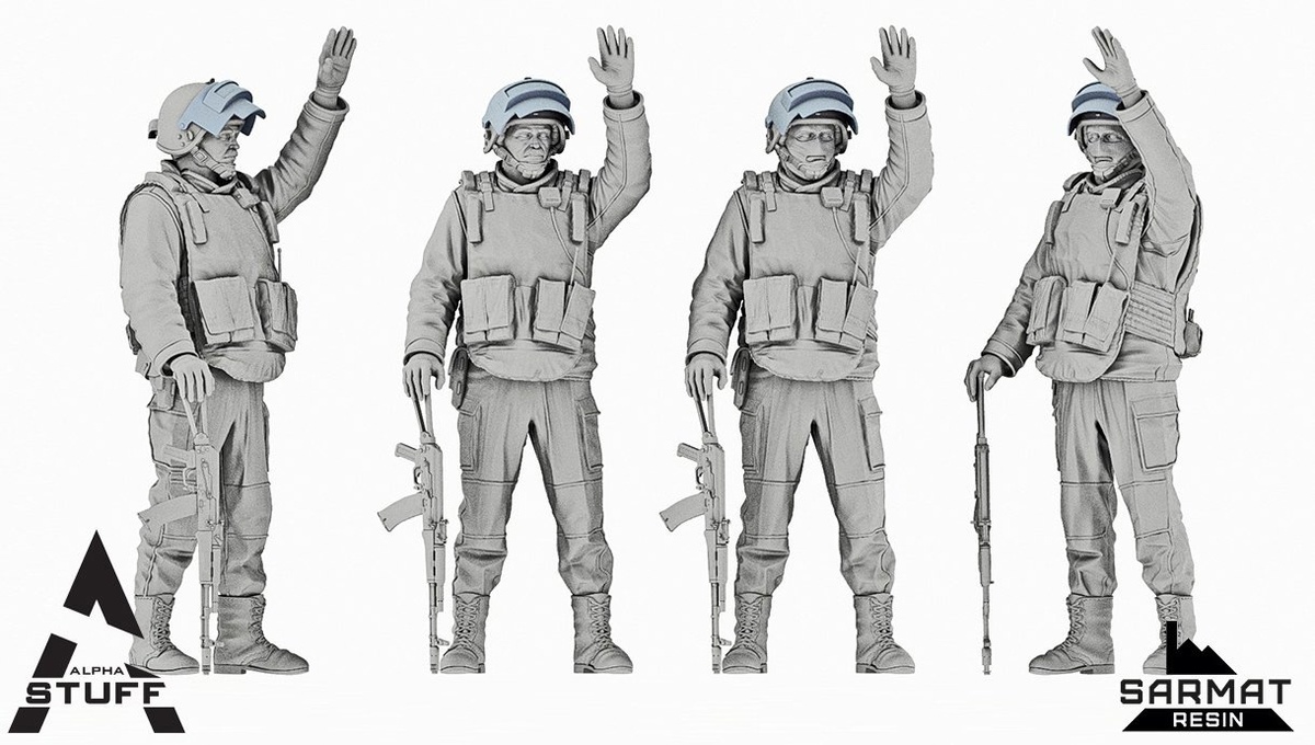 Московская SARMAT RESIN показала рендеры второй из трех будущих смоляных фигур, посвященных событиям "Черного октября" и созданной в кооперации с Alpha Stuff. Масштабы традиционно 1/35 и 1/16: SRsf35047 Сотрудник Группы «А» ГУО России. Октябрьский путч 04.10.1993 г.