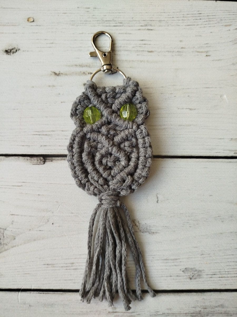 Материал. Карабин, 2 бусины, ножницы, то на чем будите плести, шнур. . 2 шнура -1м . 3 шнура - 80 см . 2 шнура - 70 см. Берем шнур 1м складываем его так, что бы один конец был длиннее другого на 20 см и навешиваем на карабин замочком наружу. Длинная часть шнура должна быть внутри.Затем навешиваем 3 шнура по 80 см. сложив их пополам, навешиваем шнур 1 м так же как и первый. Длинная часть внутри. На центральных 4 шнурах плетем плоский узел.( можно посмотреть видеоурок) Разделяем работу на 2 равные части по 5 шнуров с каждой стороны. На правый крайний шнур наплетаем бриду. ( можно посмотреть видеоурок) То же самое плетем и с левой стороны. На двух крайних шнурах плетем 3 узла фриволите. То же самое делаем слева На свободные крайние узлы с права и лева надеваем бусины. С права и лева крайние шнуры откладываем ( они пока в работе не участвуют) Продолжаем левую бриду на 4 правых шнурах. На 5-ый шнур с лёва наплетаем 3 шнура в бриду. На центральных 4