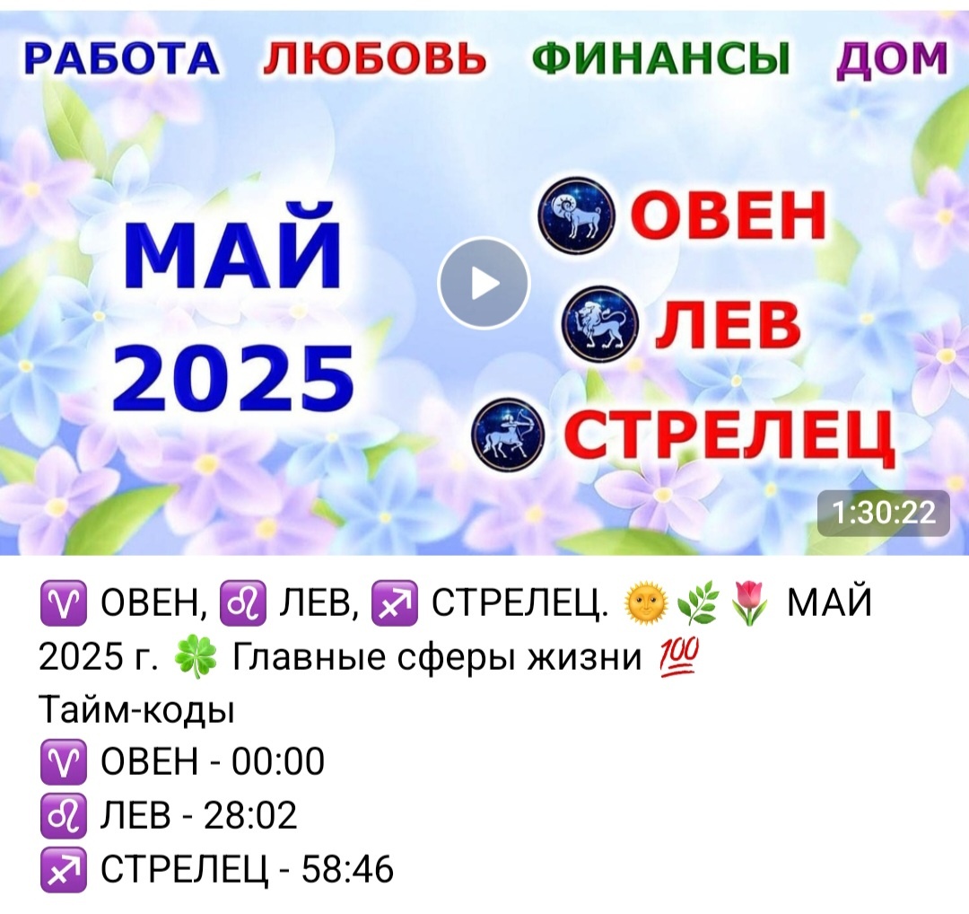 🌹 Добрый день! 🤝 Всех желающих приглашаю к просмотру прогнозов для каждого знака зодиака на 🌞 МАЙ 2025 г. 🍀 в разделе "Премиум". Рассматриваются следующие сферы жизни: 🌿 Ваша энергия 💼 Профессиональная деятельность (текущая работа, новая работа) 💰 Финансовая сфера 👩❤👨 Любовные отношения (пара) 💞 Новое знакомство 👨👩👧👦 Дом, семья, быт, родственники 👍 Совет, предупреждение 😇 Послание Ангелов