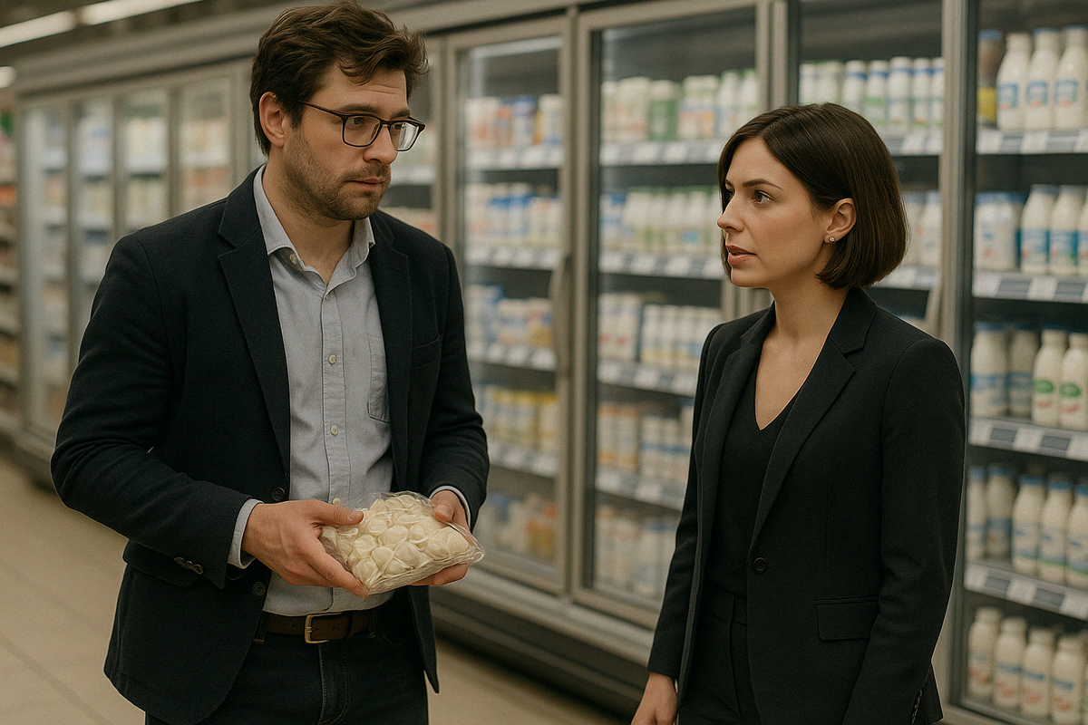 Катя подняла глаза и замерла. Мужчина напротив стоял у витрины, держа в руках пачку пельменей, но смотрел прямо на неё. Высокий, с чуть заострившимися скулами, уверенно сдержанный в осанке — и всё же с тем особенным выражением, в котором прячется незакрытая глава. Он не был из тех, кого сразу узнают. Скорее — из тех, кого вспоминают медленно, с лёгким внутренним щелчком.