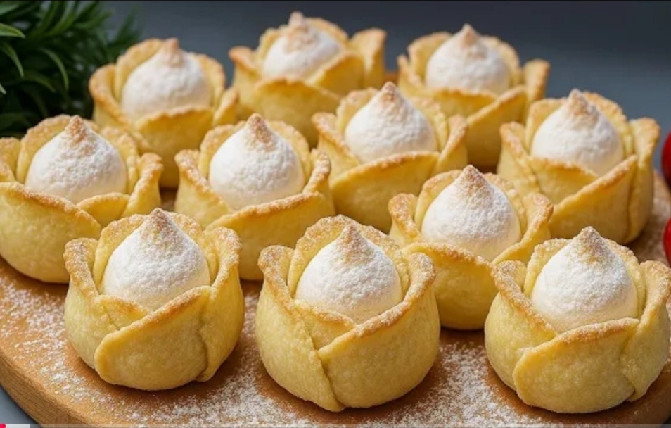 Из простого песочного теста и воздушной меренги получаются эти красивые розовые печенья. Снаружи хрустящие, внутри нежные идеально для гостей или просто для наслаждения с чашкой кофе. √ Ингредиенты: - 200 г муки - 100 г масла - 2 желтка - 50 г сметаны - 1 щепотка соли - 50 г грецких орехов ( измельченных) - 2 белка - 100 г сахара - 1 ст.ложка ванильного сахара -1/4 ч.ложки лимонной кислоты -1 ст.ложка кукурузного крахмала Время выпечки: 10-20 минут при 200°С Не дайте форме вас обмануть - эти розы очень легко сделать и они вкусные, как рай! Спасибо за просмотр и приятного вам времяпрепровождения за выпечкой!🍪💐