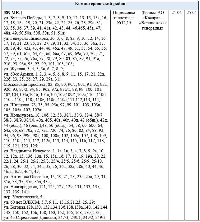 Публикуем апрельский график отключения горячей воды в Воронеже