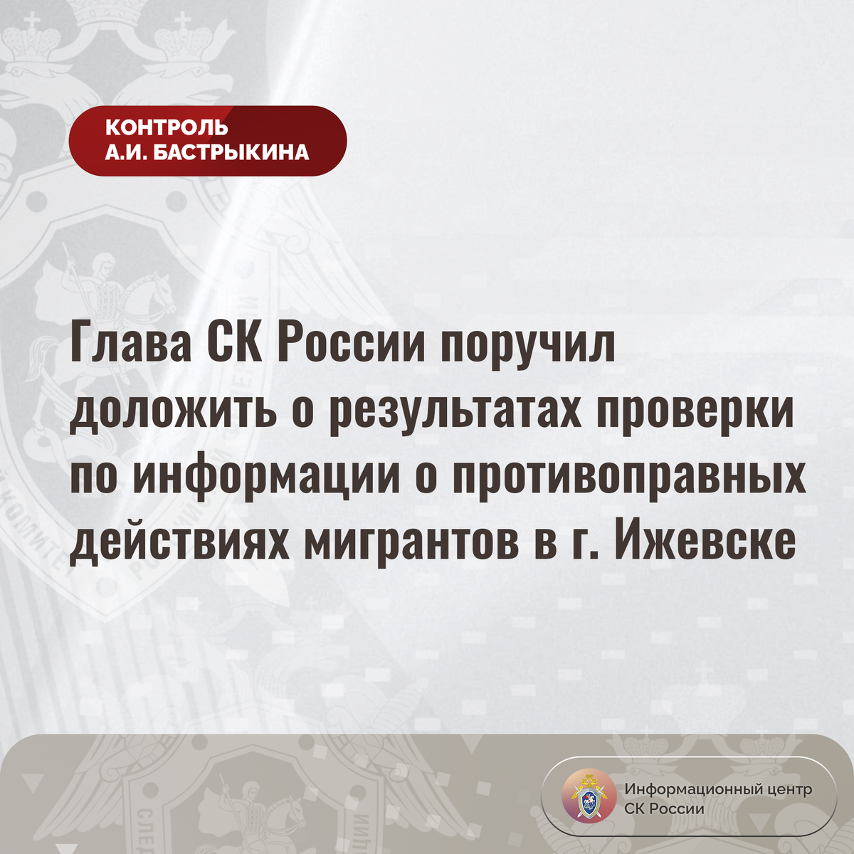 Глава СК России поручил доложить о результатах проверки по информации о противоправных действиях мигрантов в г. Ижевске