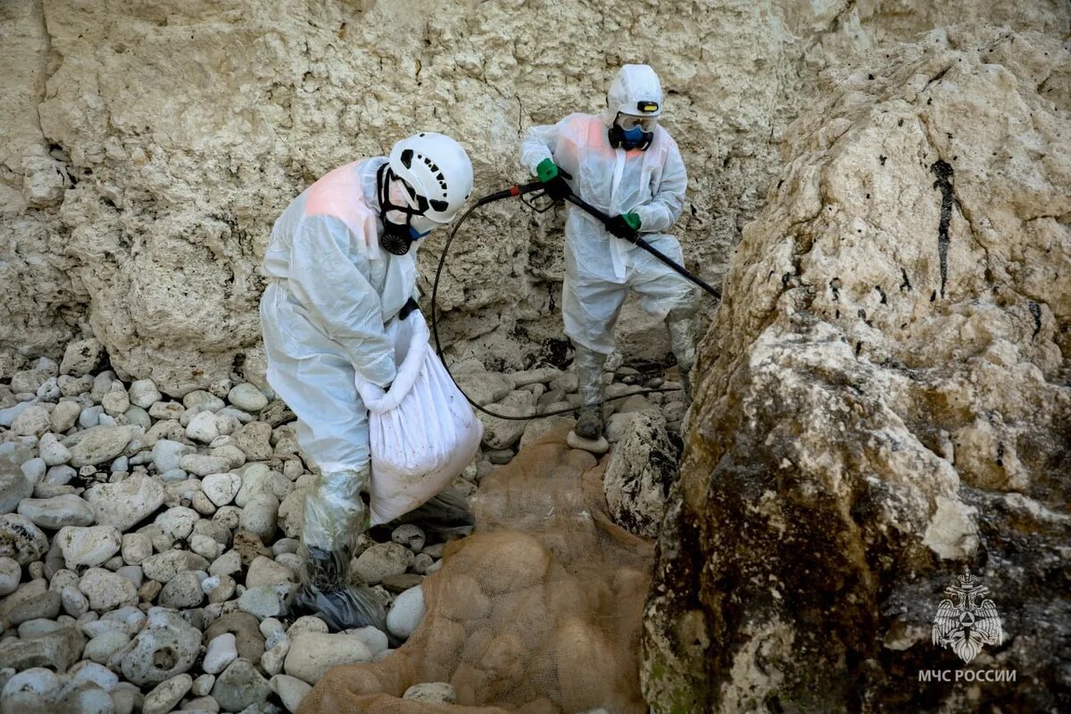 Паровую очистку побережья Севастополя продолжают сотрудники МЧС России. Работы ведут на скалистых и галечных берегах. Для очистки камней сотрудники МЧС России используют установку, подающую пар под давлением: пар сбивает фракцию нефтепродуктов с поверхности; чтобы она не распространялась вокруг места обработки, периметр устилают сетью; на сеть насыпается сорбент, вбирающий частицы нефтепродуктов; после очистки сорбент можно использовать повторно. По этой технологии уже удалось очистить 390 квадратных метров севастопольской береговой линии. Мероприятия продолжаются. Сегодня они будут вестись в районе мыса Толстый, а на ближайшее время запланированы и в других районах.