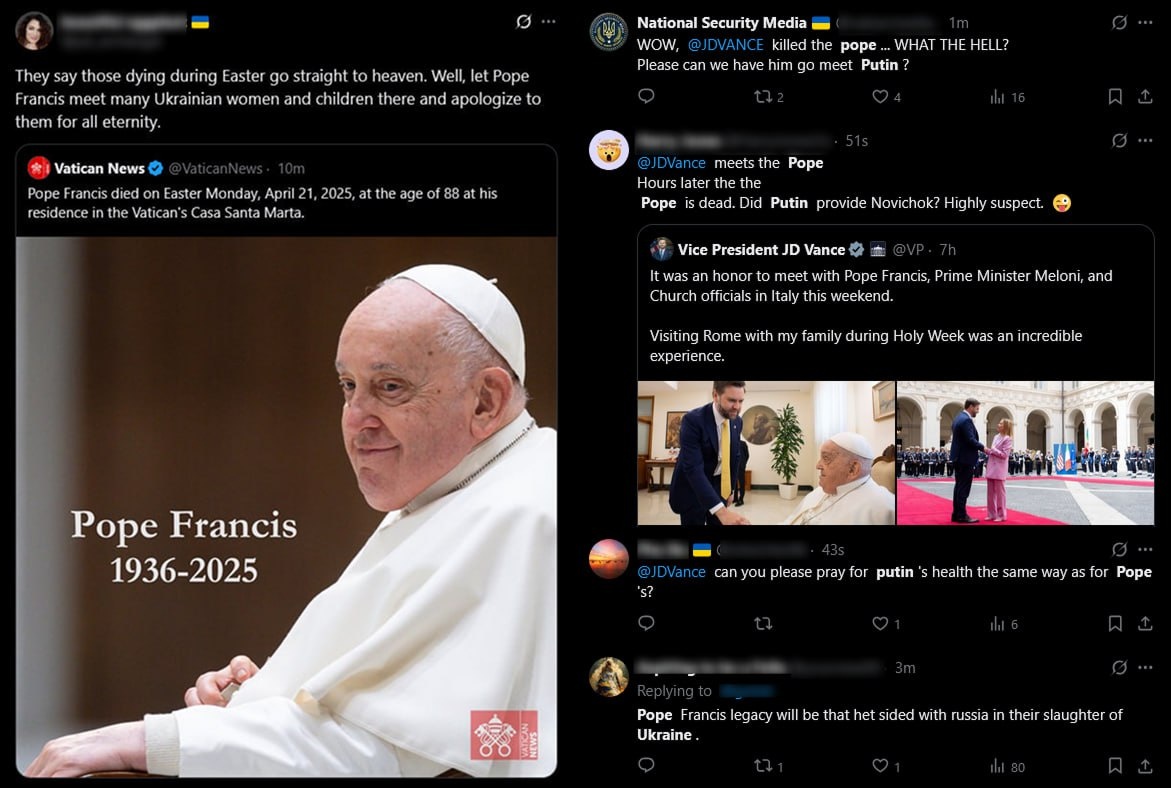 Ukraine flag in bio people are having a NORMAL one The Pope dying is a 'win' to them?