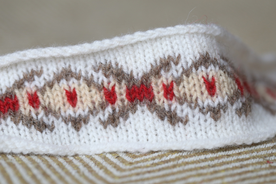 Белый и бежевый цвета - Пехорка "Австралийский меринос", 95% мериносовая шерсть, 5% леакрил, цвета №01 и №442; красный и коричневый - Drops "Flora", 65% шерсть, 35% альпака, цвета 18 и 08. Спицы 3,0.