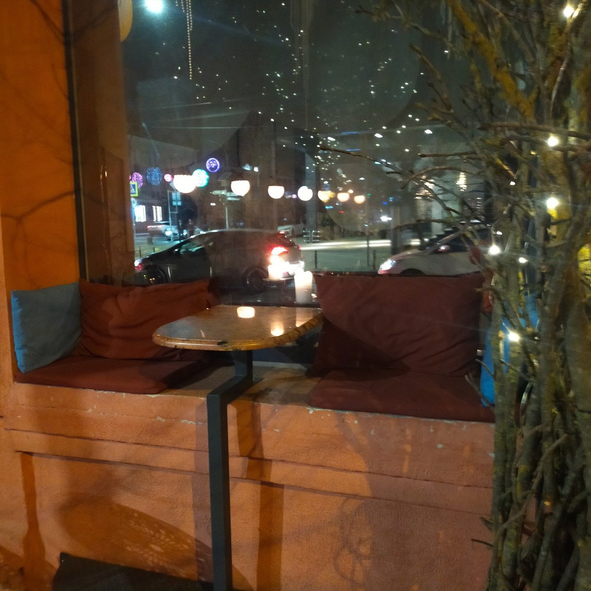 #Краснодар Не так давно были приняты поправки к закону об уличной зоне кафе. До этого уличные зоны было разрешено делать что-то типа с мая по сентябрь. Теперь покушать на улице можно круглогодично. В заведении "хлеб да винчик" можно зимой с комфортом для попы посидеть на подоконнике. © Антон Квитанцев