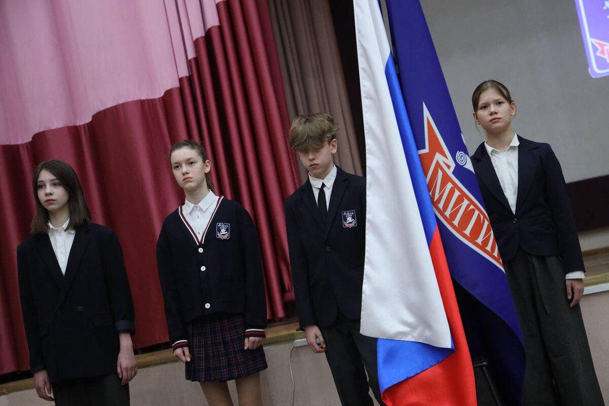 Поднятие флага. 21 апреля 🇷🇺 Началась очередная учебная неделя, и мы традиционно показываем фото с церемонии поднятия флага! 1️⃣ В первом корпусе флаг поднимали Кира, Дарья, Максим и Александра из 6 «Б». 2️⃣ Знамённая группа второго корпуса — Дмитрий, Матвей, Анастасия и София из 5 «А». А ещё в «младшем» корпусе сегодня награждали второклассников, которые участвовали в творческом конкурсе «Космос и мы» 🪐 ——— Успешной пятидневки, котаны 🫶 #ДОНМ #РоссияМояРодина