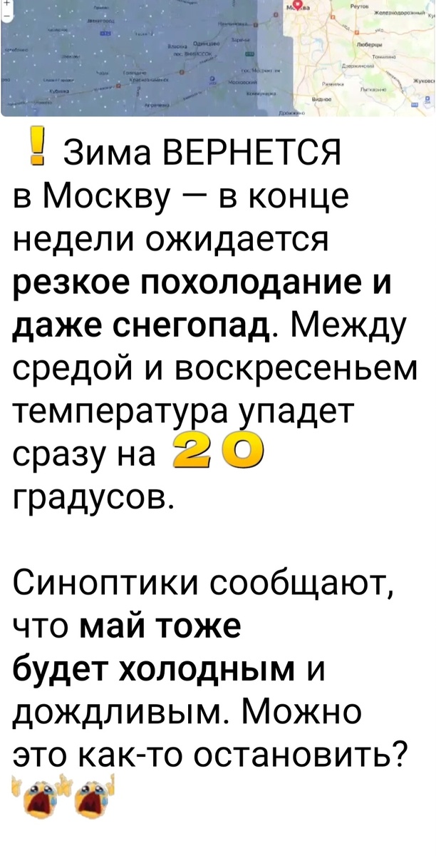 Вот нас колбасит ,вернее не нас а погоду . Сегодня хотела посадить помидоры в теплицу и уже семь штук посадила . А тут такие прогнозы. А ещё втык получила от папы ! Нельзя работать на огороде, праздничная седмица . Ну что укрою свои семь штук если что ,надеюсь не пропадут. В прошлом году сажала двадцать шестого апреля ,неделю заморозков укрывала .Помидоры были ранние в подмосковье .Нельзя так нельзя ,пойду еду готовить)) Разожрусь на праздники до размеров колобка .))Хотя все есть и шашлык вчерашний и яйца с куличами и салат .Картошечки не хватает к селедочки . Опять обьемся)) .Работать нельзя ,поем и лягу .)))Искренне сожалею работающим ,вставать не свет не заря ,хотя в таком режиме жила всю жизнь .Это только четыре года домохозяйка . Но скажу я себе дел придумываю выше крыши ,на работе легче . С
