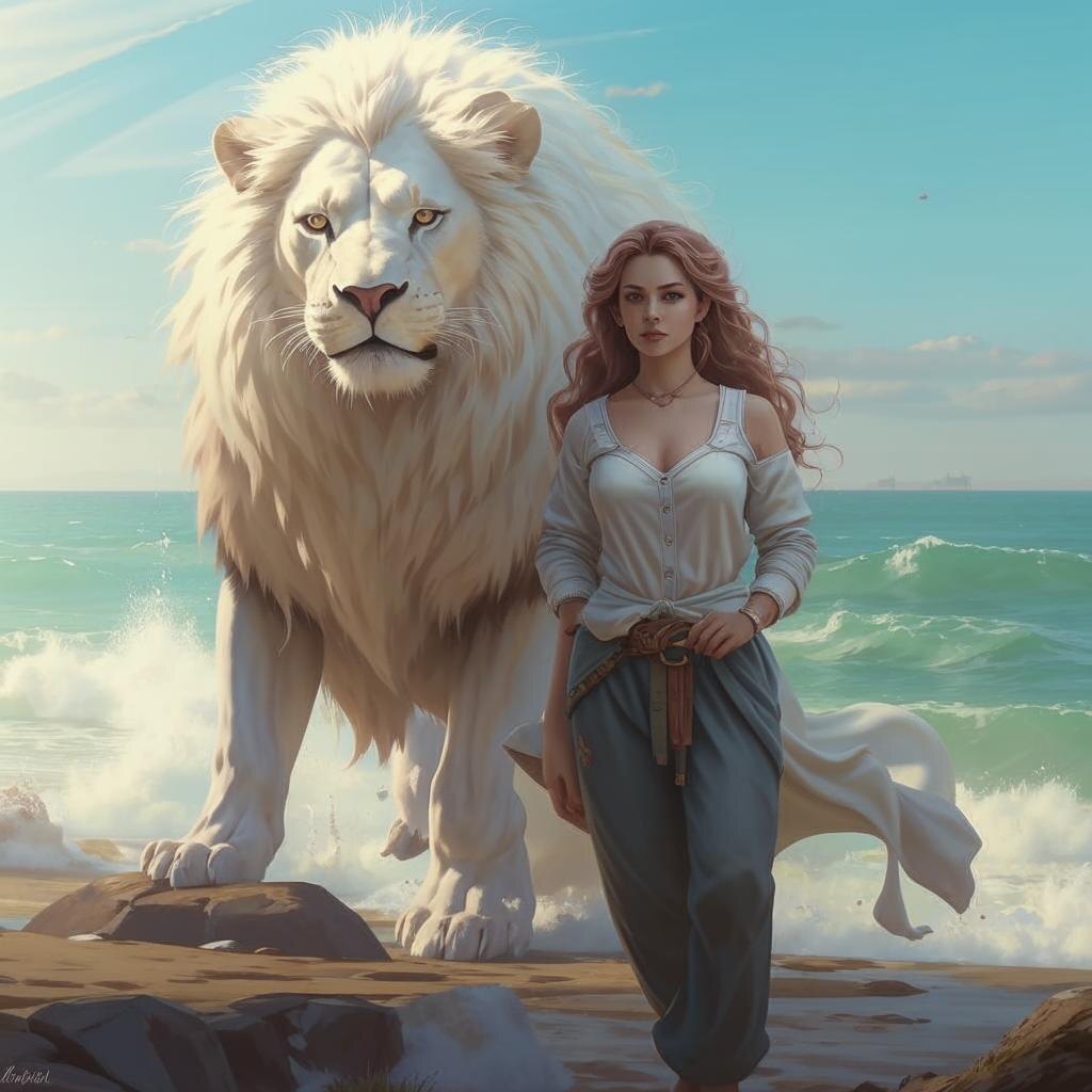 Кинт вновь преобразился — мощная грива вспыхнула белизной среди тёмных горных вершин, лапы будто приросли к каменным уступам, глаза зажглись изумрудным блеском. Я ощутила глубокую связь между нами, словно древняя мудрость зверя проникла мне прямо в душу.