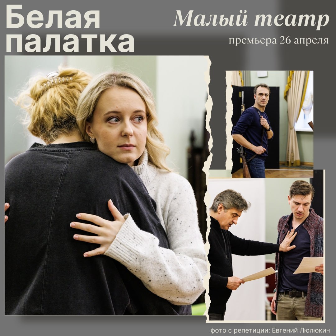 Малый театр расскажет о подвиге, утрате и любви 💐 26 апреля в Доме Островского сыграют премьеру спектакля «Белая палатка». Постановка приурочена к 80-летию Победы. Литературной основой стали тексты советского прозаика и драматурга Ивана Стаднюка, прошедшего Великую Отечественную войну и посвятившего этому опыту свои главные произведения. В основе постановки – две пьесы Ивана Стаднюка; обе были созданы им на основе собственной повести «Плевелы зла» (1957) – «Горький хлеб истины» (1971) и «Белая палатка» (1984). Идея обратиться к этой пьесе принадлежит главному режиссёру Малого театра, Алексею Дубровскому. Режиссура доверена Ирине Михайленко, недавней выпускнице РГИСИ (мастерская Григория Козлова). Год назад она приняла участие в режиссёрской лаборатории Малого театра «Постигая Чехова»; созданный ею эскиз «Бабье царство» был признан лучшим. Инсценировку «Белой палатки» Ирина подготовила сама; помимо двух пьес Ивана Стаднюка, она воспользовалась собственным семейным архивом (по совпа