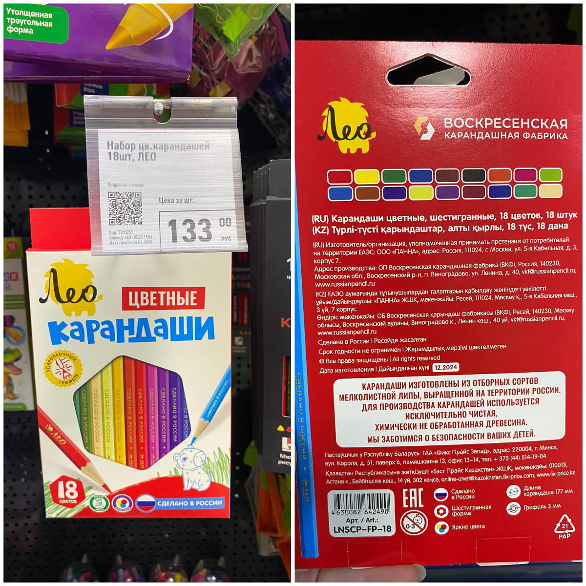 Всем привет. Меня зовут Наталья. Я очень рада видеть вас на своём канале. Сегодня мы с вами прогуляемся по магазину Фикс Прайс, который находится по адресу: город йошкар-Ола, улица Красноармейская, дом 105. В этот раз магазин порадовал меня новинками. Так что устраивайтесь поудобнее и порадуйтесь вместе со мной. Набор цветных шестигранных карандашей стоимостью 133 рублей. В упаковке 18 штук. Страна изготовления Россия. Данные карандаши изготовлены из чистой, химически необработанной древесины мелколистной липы отборного сорта. Набор цветных карандашей стоимостью 149 рублей. В упаковке 24 штуки. Состав: полистирол, полиэтилен. Страна изготовления Китай. Данные карандаши изготовлены без использования древесины. Они ударопрочные и имеют утолщённый грифель 4 мм. В магазине 6 дизайнов упаковки. Набор утолщённых фломастеров стоимостью 87 рублей. В упаковке 8 штук. Состав: полиэтилен, полипропилен, фибра, вода, глицерин, пигмент. Страна изготовления Китай. В магазине 5 дизайнов упаковки. Масс