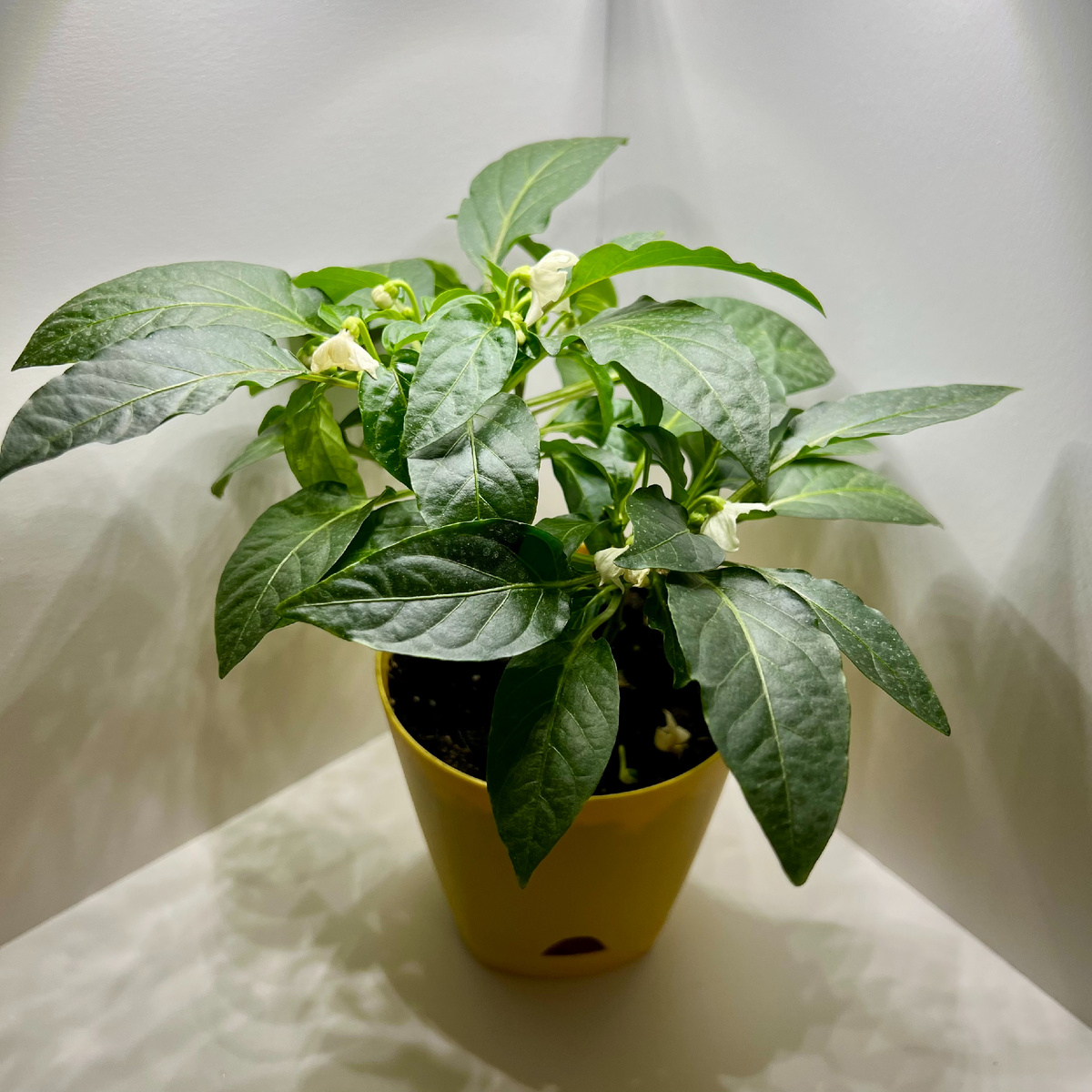 Сегодня я хочу поделиться новостями о выращивании перца Семицветик. Напоминаю, что весь ход этого эксперимента можно посмотреть здесь. После первого цветения перчики пока не сформировались. Возможно, это связано с проветриванием, которое я устраивал во время цветения — холодный воздух действительно может мешать завязыванию плодов. Но природа берет свое! Растение уже выпустило новые бутоны и снова зацветает. На этот раз я буду внимательнее следить за температурой и постараюсь создать идеальные условия. Хорошие новости и от "младших" растений — они активно догоняют своего старшего собрата и уже тоже начинают цвести. Так что вскоре мой подоконник может превратиться в настоящий разноцветный перцовый сад! Теперь моя главная задача: Если у вас есть опыт выращивания декоративных перцев и советы по улучшению завязываемости плодов — обязательно делитесь в комментариях! А пока — вот фото моего перца, который снова радует цветами.