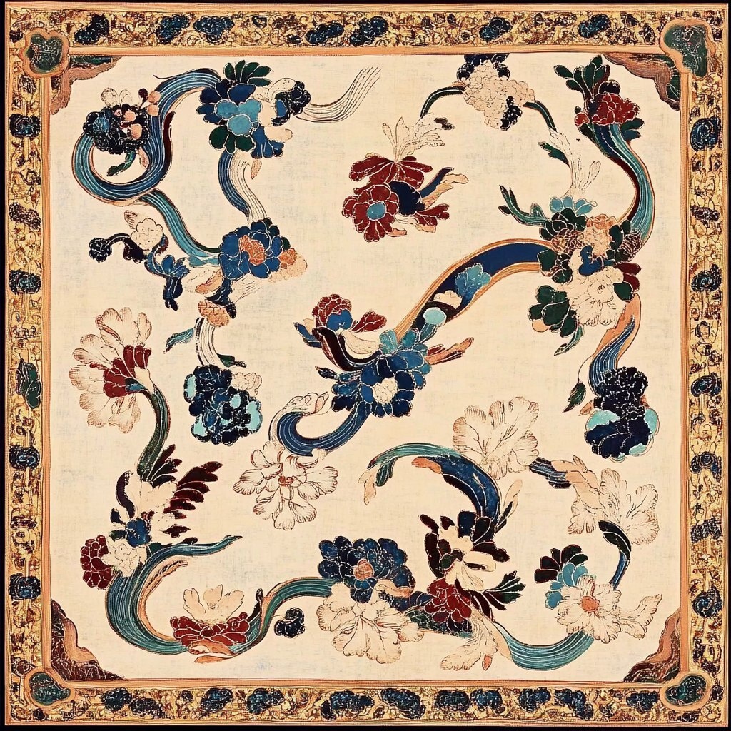 Создано на основе запроса: Featuring high-resolution Dunhuang patterns, silk fabric pattern design, and pattern circulation