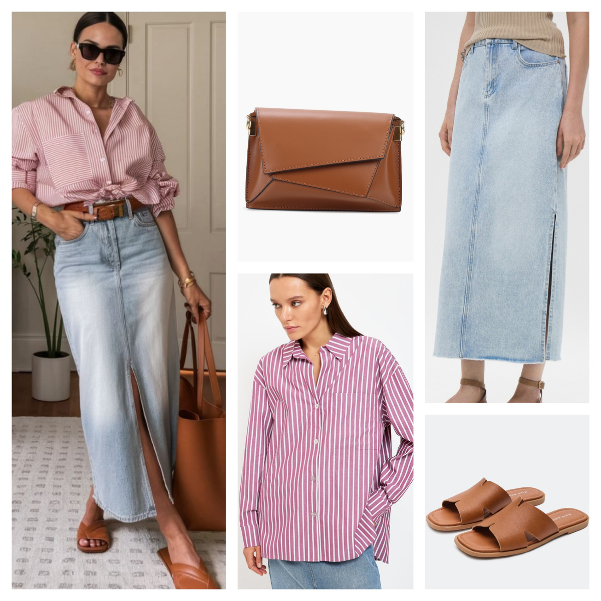 Топ-5 трендовых базовых луков — подробно разбираем каждую деталь и стилистические приёмы, чтобы свободно применять их принципы при составлении собственных уникальных ансамблей. Деним — вечная классика, привносящая свежесть и динамику в любой образ. Особенно летом выигрывают модели светлых оттенков: небесно-голубые джинсы или белые шорты гармонично подчеркиваются кожаными ремнями, сумочками и обувью благородных карамельных цветов. Дополнительно усиливаем эффект трендовым элементом текущего сезона — рубашкой с вертикальной полосой. Повторяем образ: ✔️Джинсовая юбка за 3600₽ ✔️Рубашка в полоску за 1500₽ ✔️Ремень за 1000₽ ✔️Сабо за 4000₽ ✔️Сумка за 13700₽ Нежность и элегантность объединяются в гармоничном дуэте бежевых и розовых оттенков, создавая нейтральный, но одновременно женственный и романтичный образ. Чтобы добавить остроты и структурированности такому сочетанию, можно дополнить ансамбль костюмом-жилетом. Повторяем образ: ✔️Бежевые брюки за 6000₽ ✔️Футболка за 900₽ ✔️Жилет за