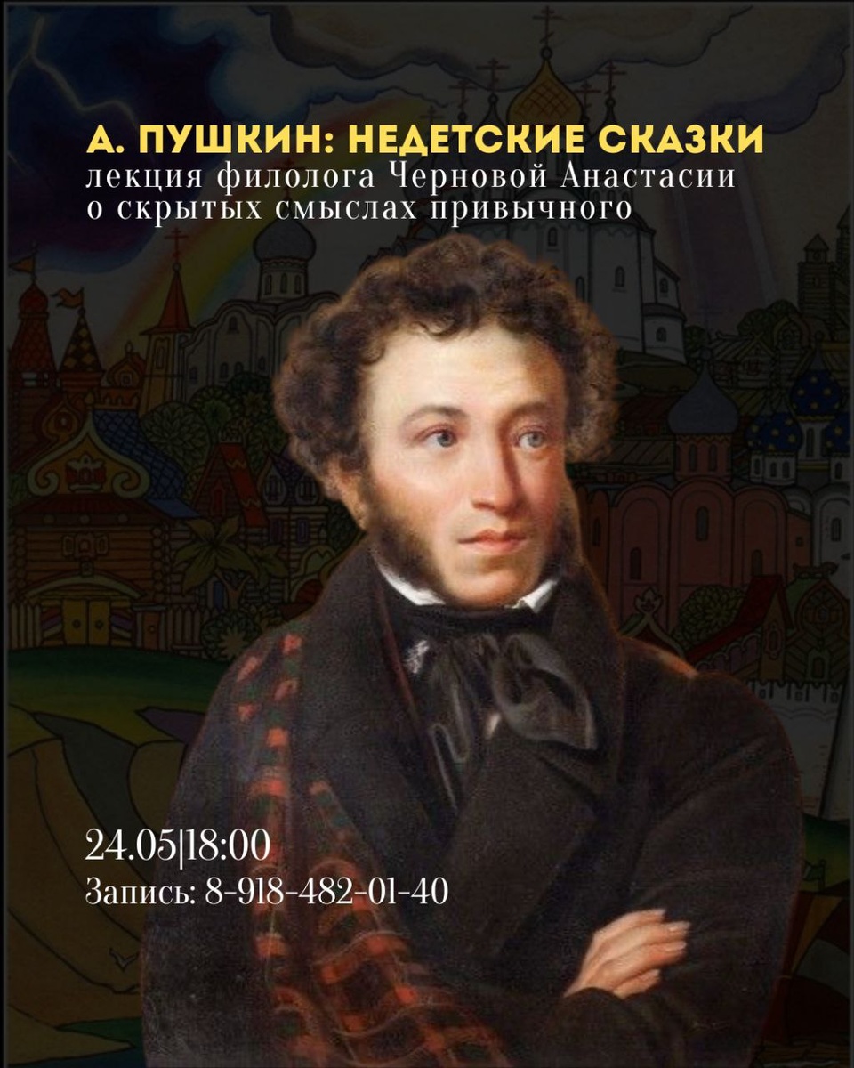 «ПУШКИН: НЕДЕТСКИЕ СКАЗКИ» - лекция филолога Анастасии Черновой в культпространстве Спутник (Краснодар) 24.05.2025 в 18.00